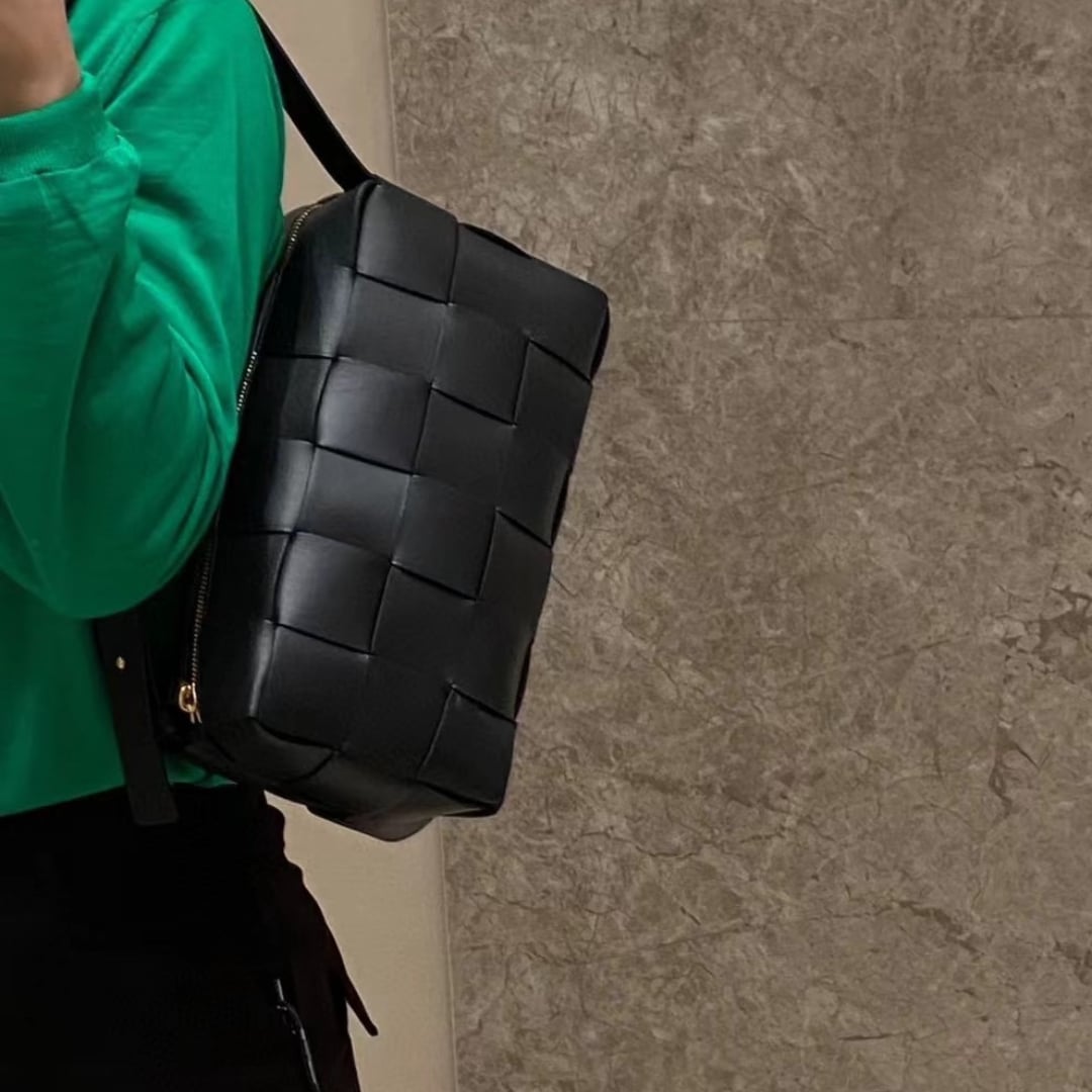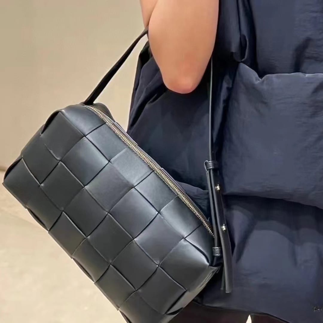 Bottega Veneta Brick Cassette Intreccio Leather Shoulder Bag Black 28Cm 709360Vmay18425