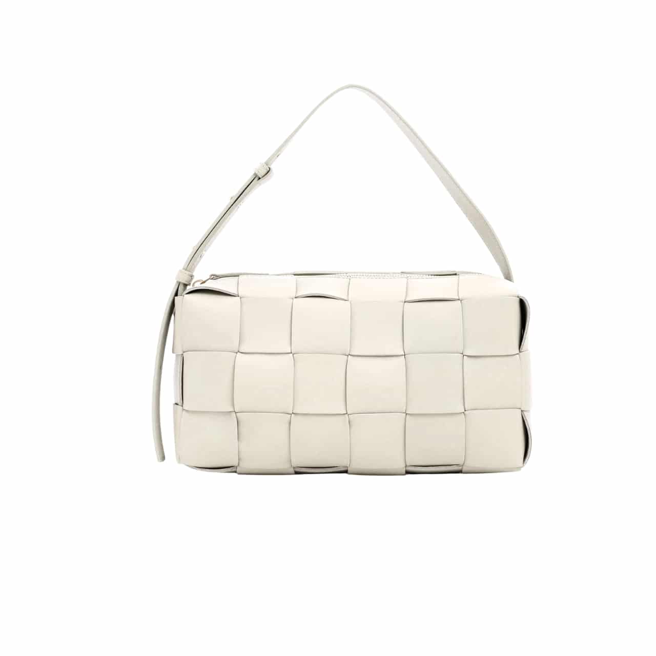 Bottega Veneta Brick Cassette Intreccio Leather Shoulder Bag White 28Cm