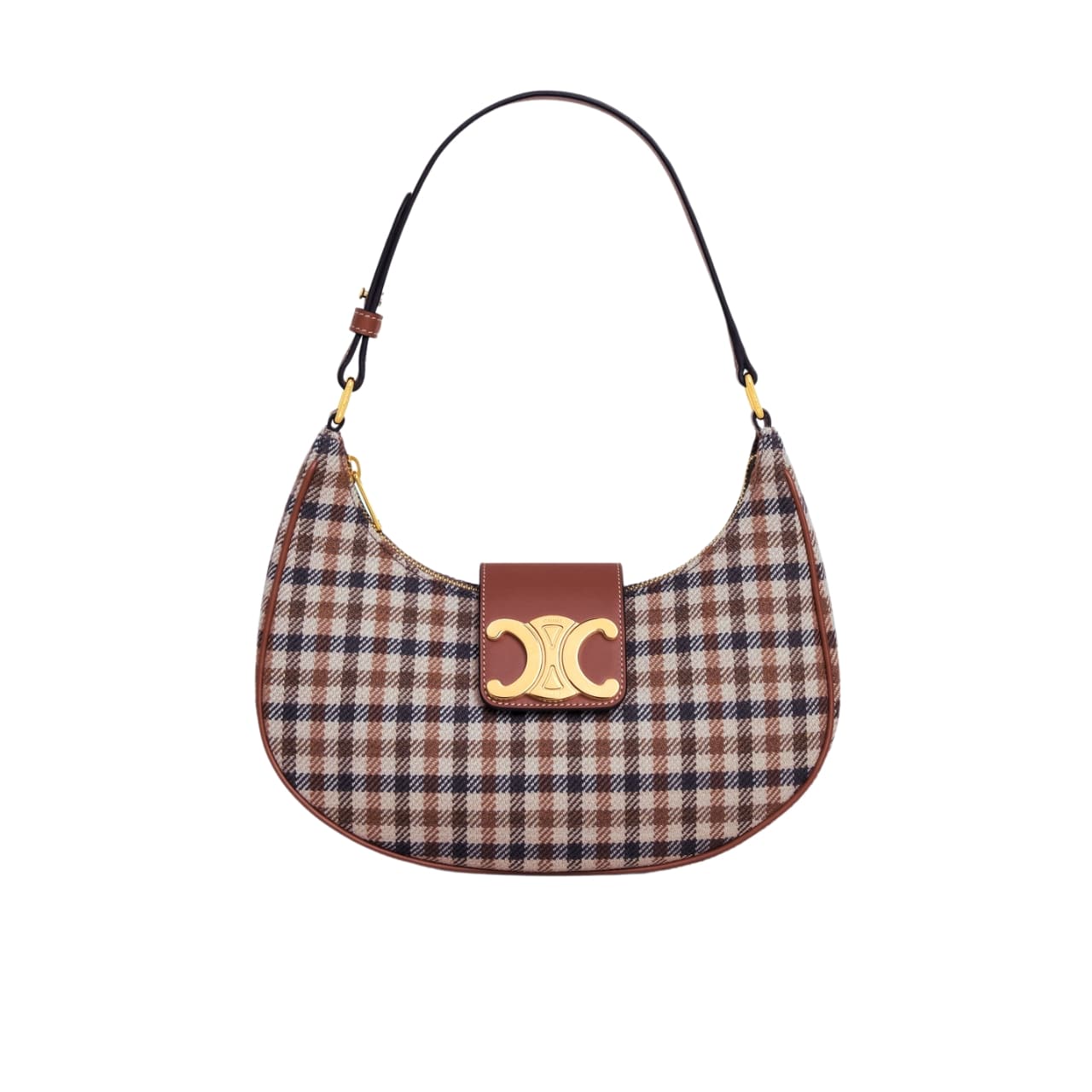 Celine Ava Triomphe Bag In Tartan Textile And Calfskin Medium 24 cm / 9.5 inches