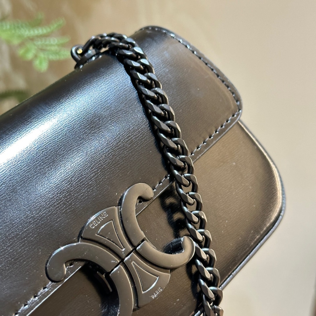 Celine//Chain Triomphe In Shiny Calfskin Shoulder Bag//Black Black//20cm