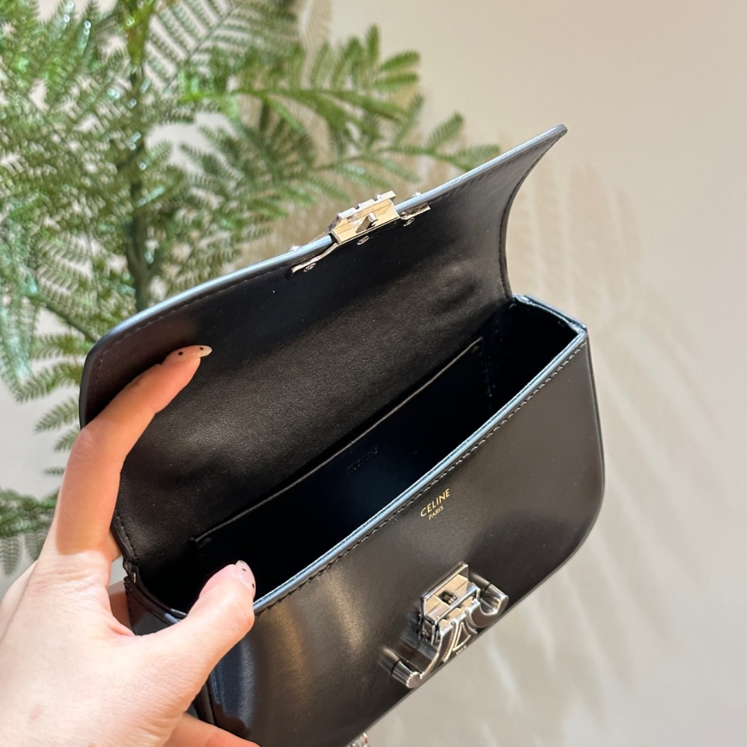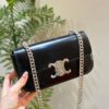 Celine//Chain Triomphe In Shiny Calfskin Shoulder Bag//Silver Black//20cm//115203BF4 38SI