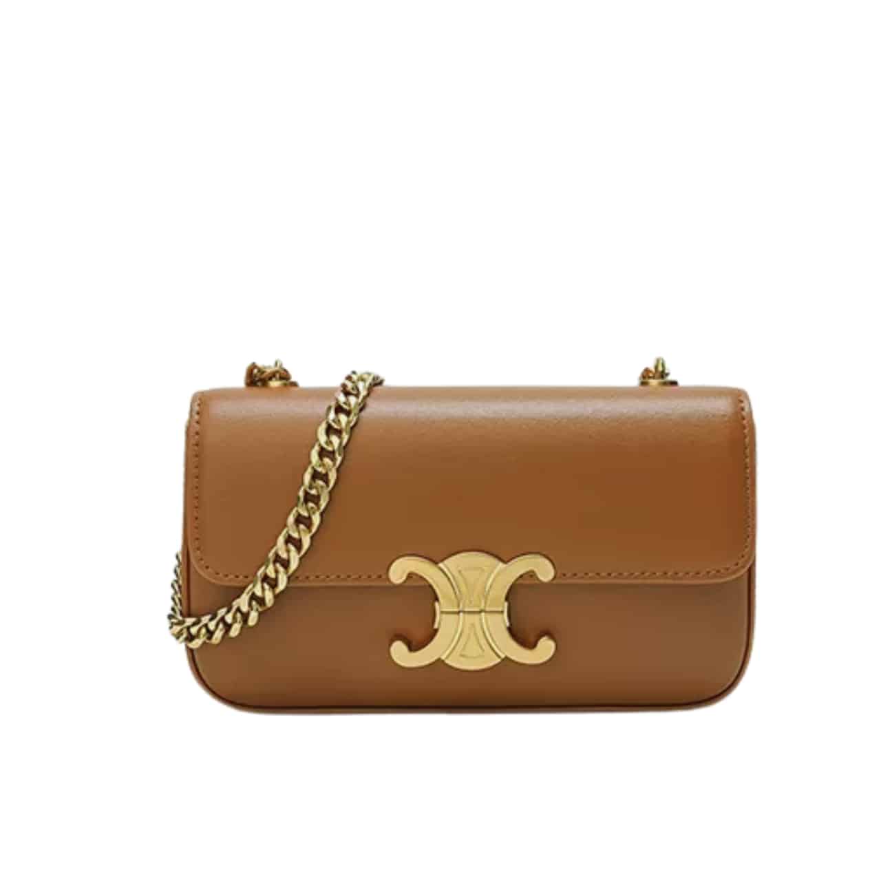 Celine Chain Triomphe In Shiny Calfskin Shoulder Bag Silver Golden Brown 20cm