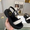 Celine Clea Triomphe Sandal In Calfskin Canvas Black