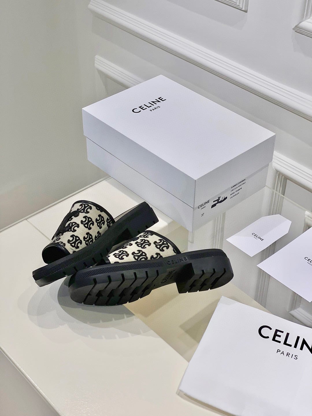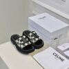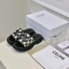 Celine Clea Triomphe Slide In Triomphe Stamped Canvas Calfskin Black