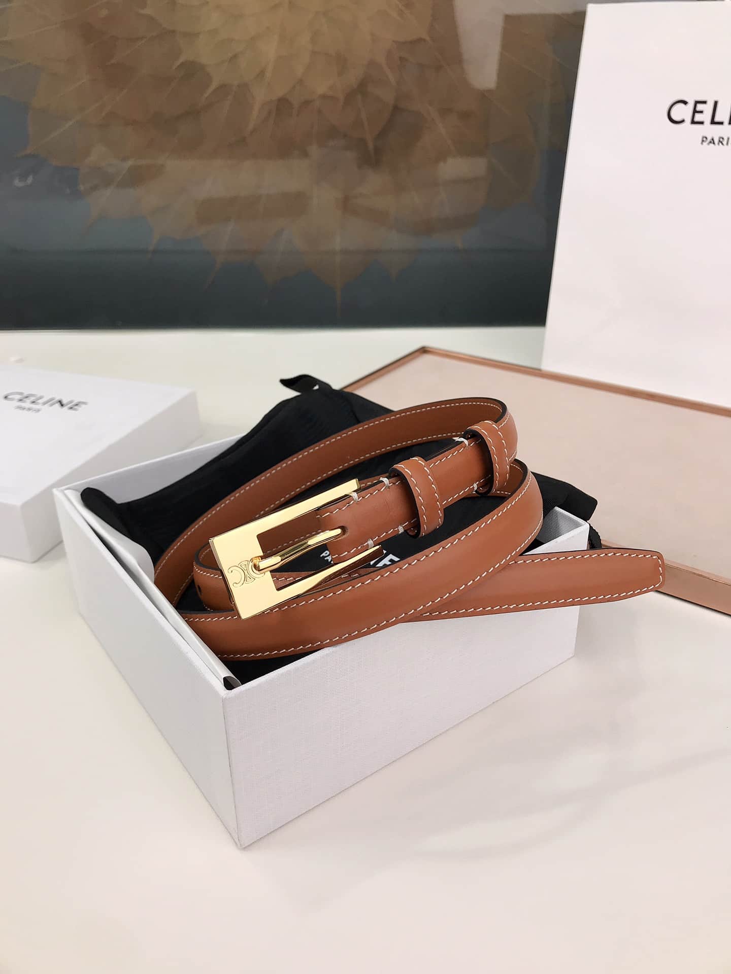 Celine Leather Belt Brown 1.8Cm