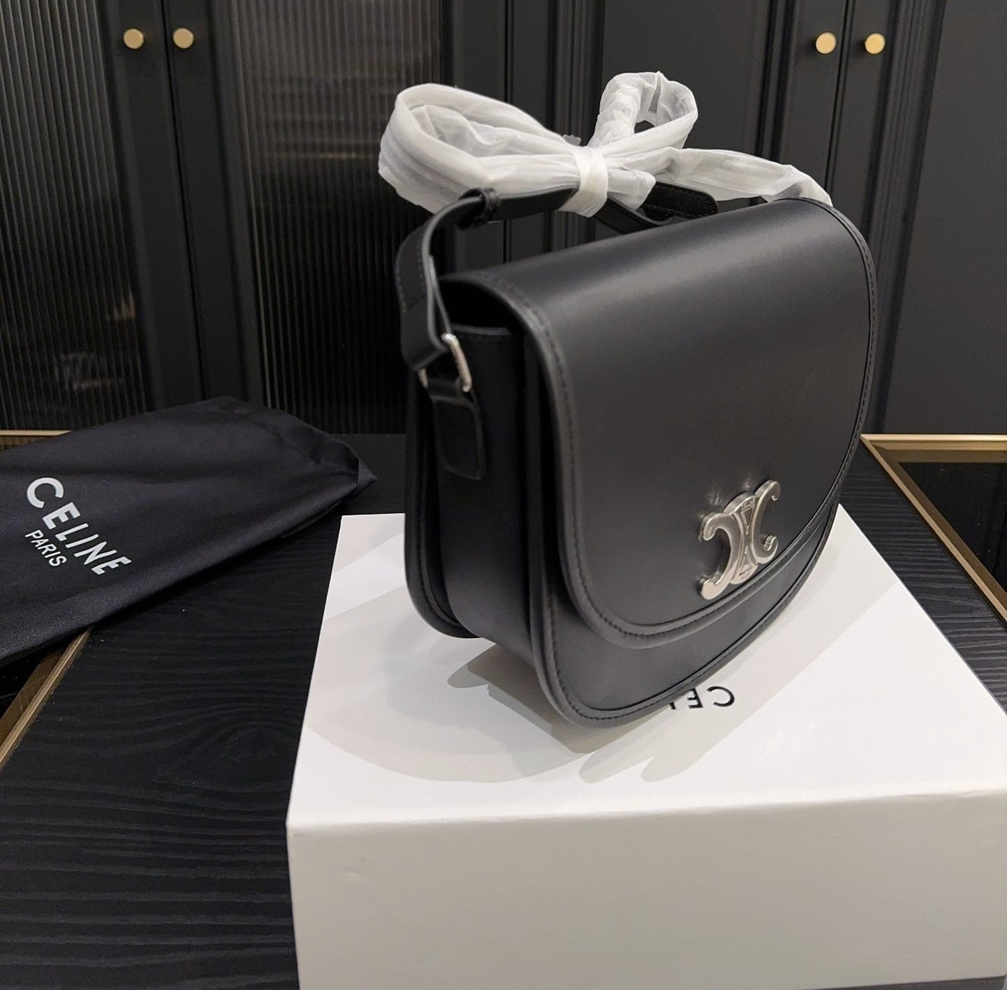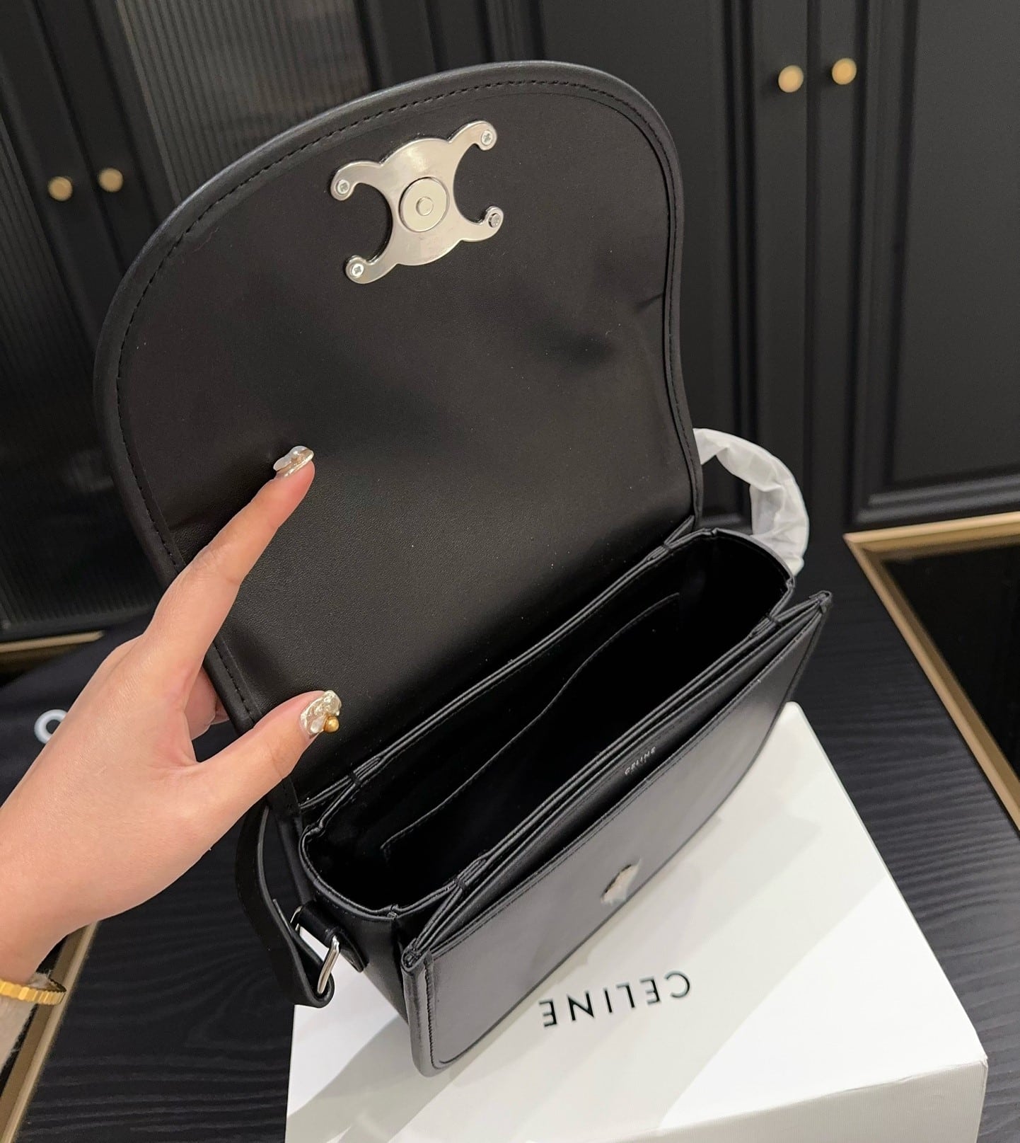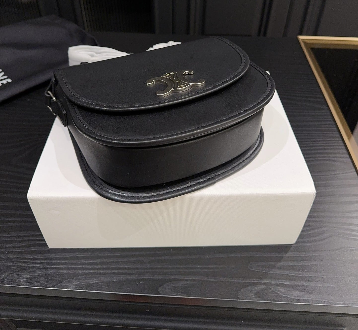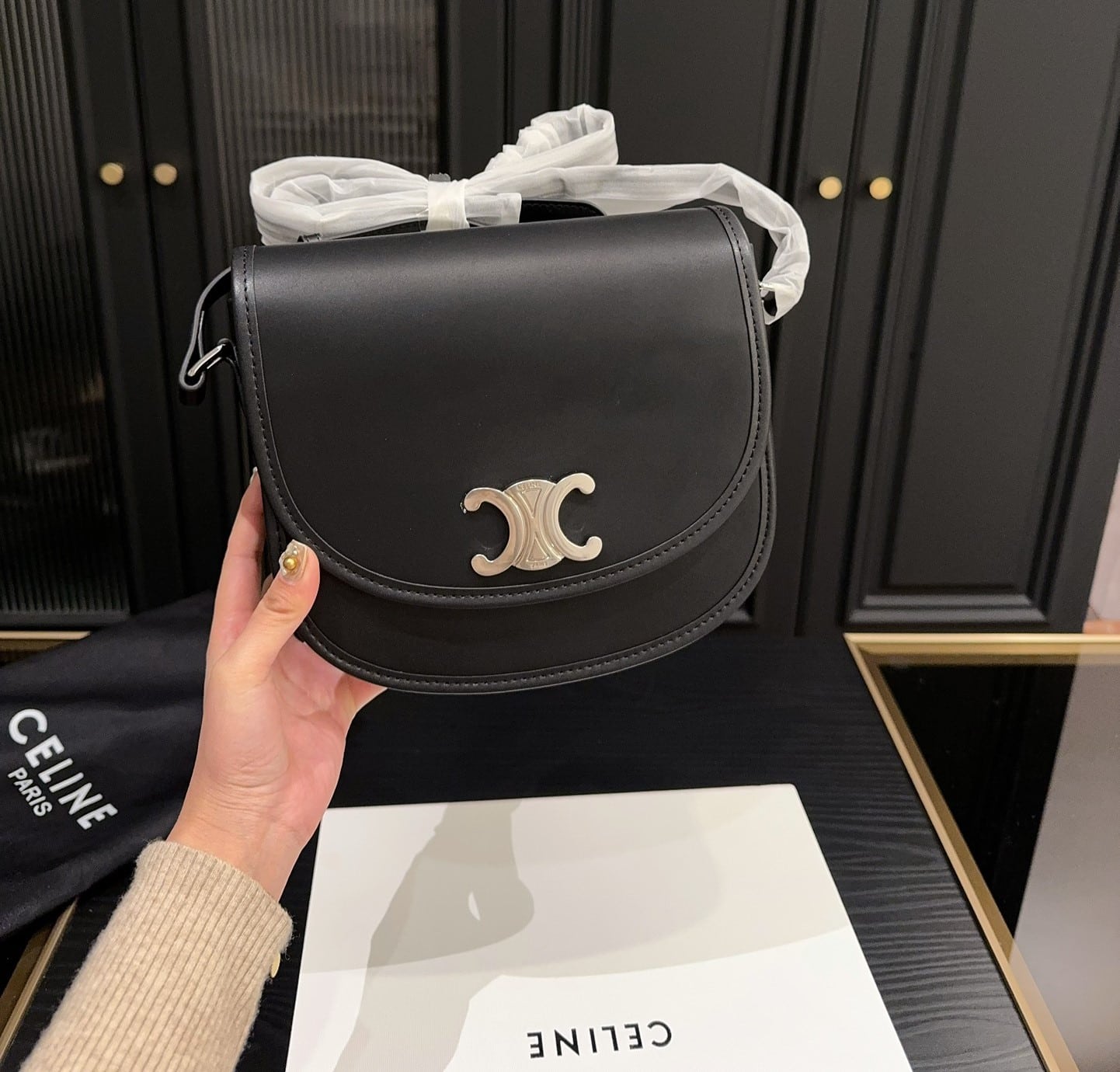 Celine //Medium Besace Triomphe In Supple Natural Calfskin //Black //21cm