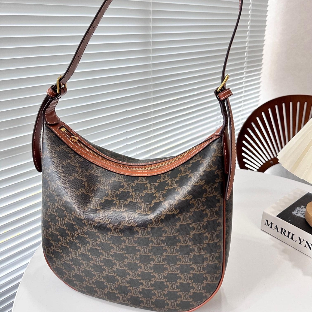Celine Medium Heloise Bag In Triomphe Canvas / Dark Grey & Tan / 11.8 x 11.2 x 3.1 inches / Shoulder Bag