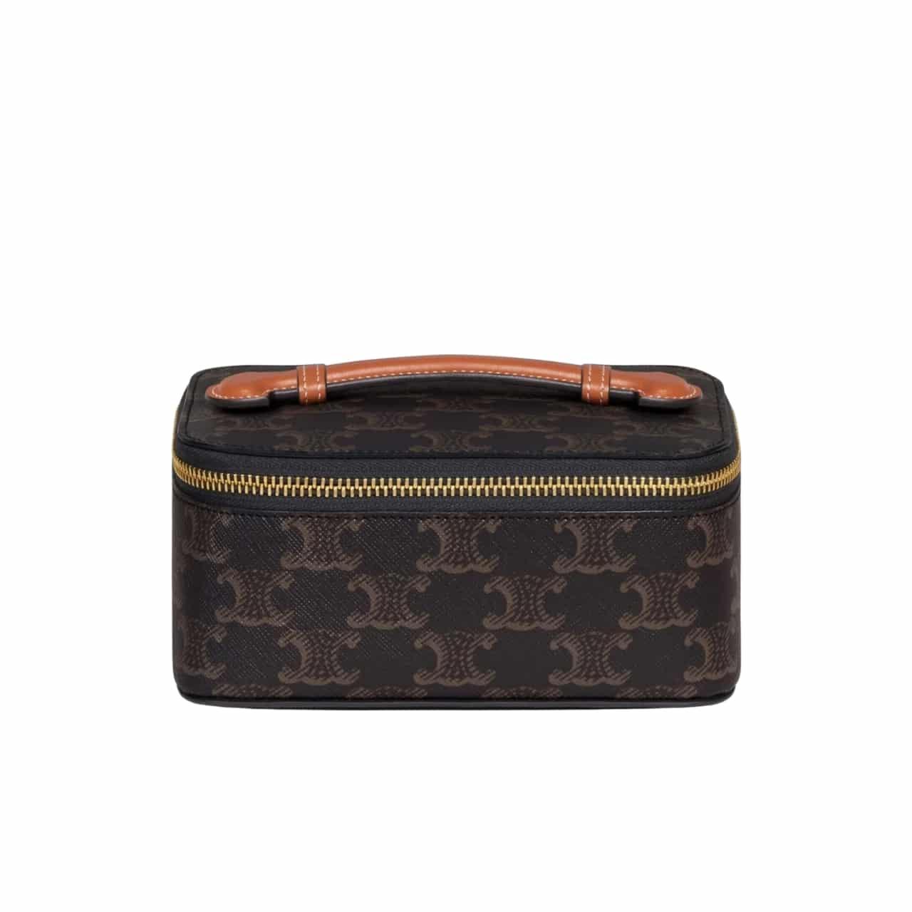 Celine Small Toiletry Case In Triomphe Canvas And Calfskin Top Handle Bag 16 cm / 6.3 inches