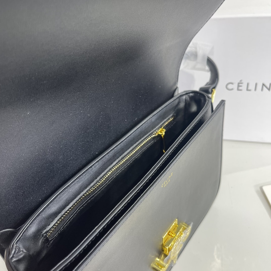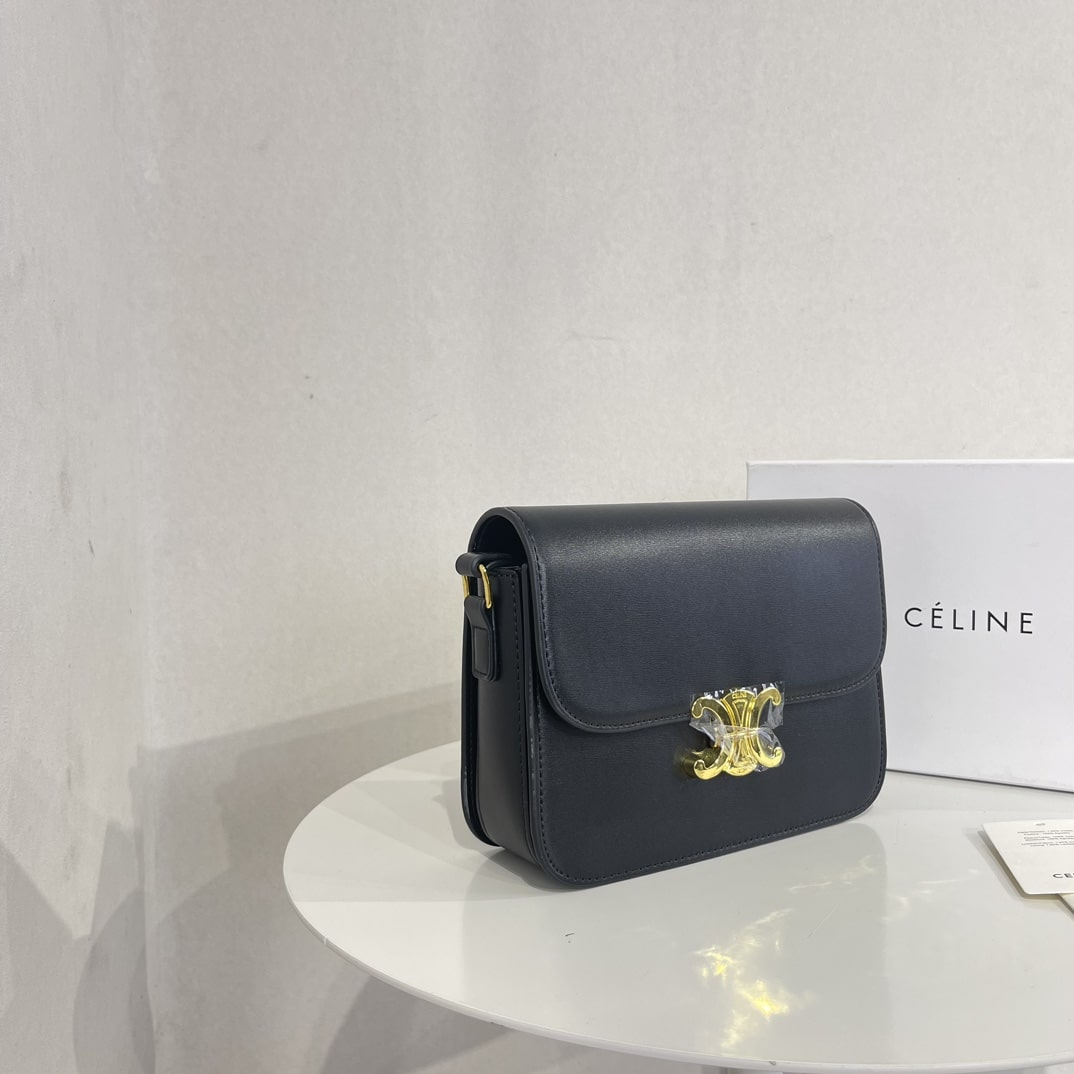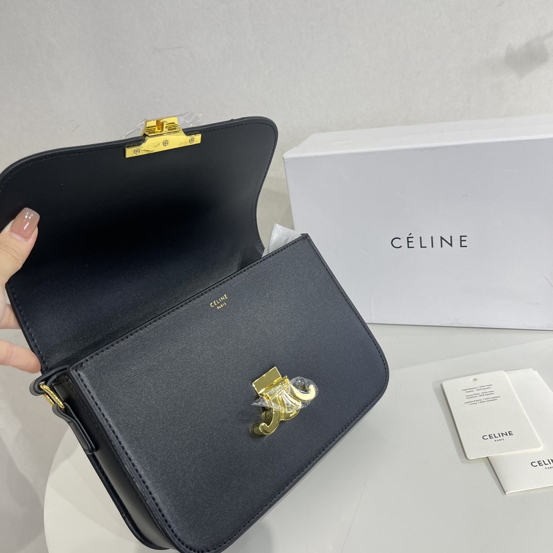 Celine Classique Triomphe Bag In Shiny Calfskin Black 18cm
