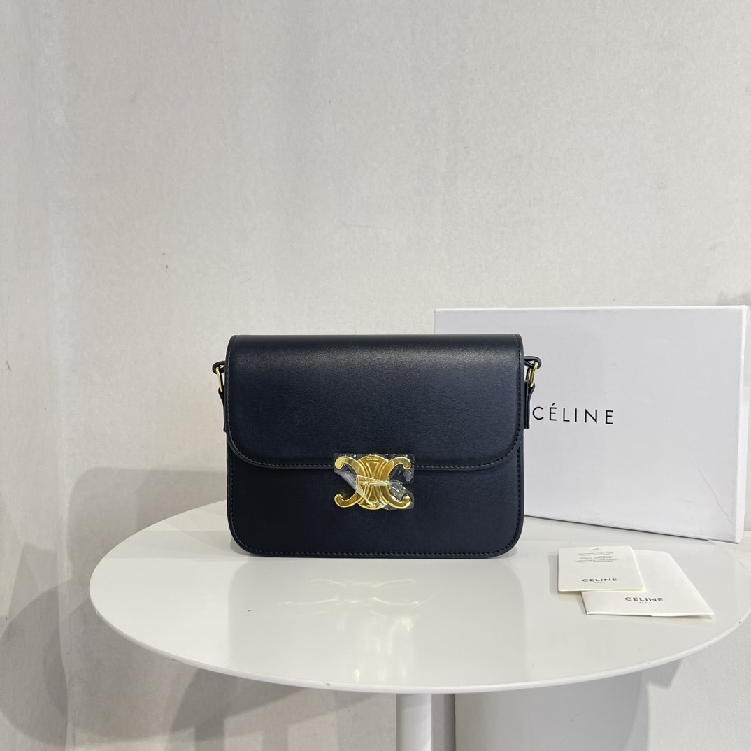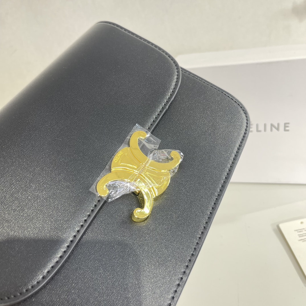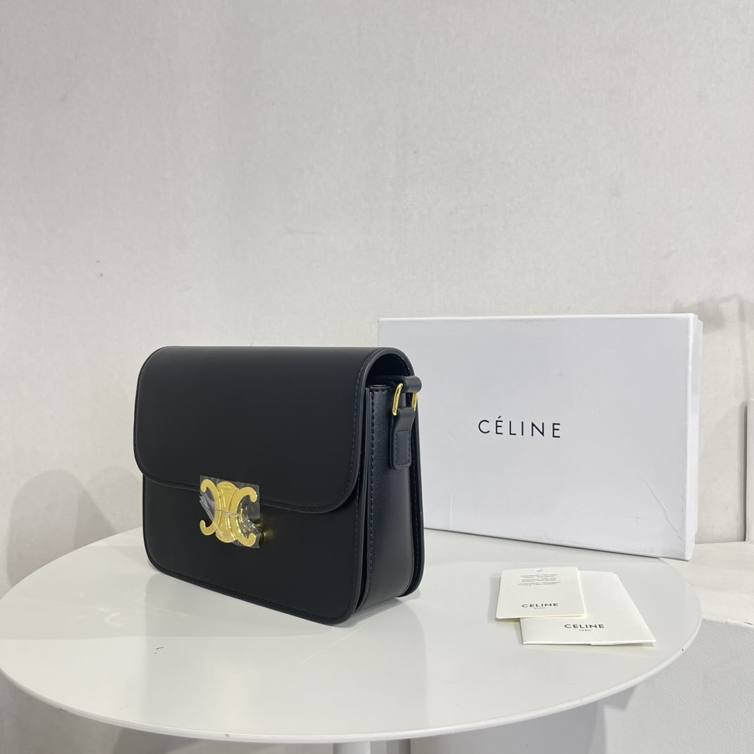 Celine Classique Triomphe Bag In Shiny Calfskin Black 18cm
