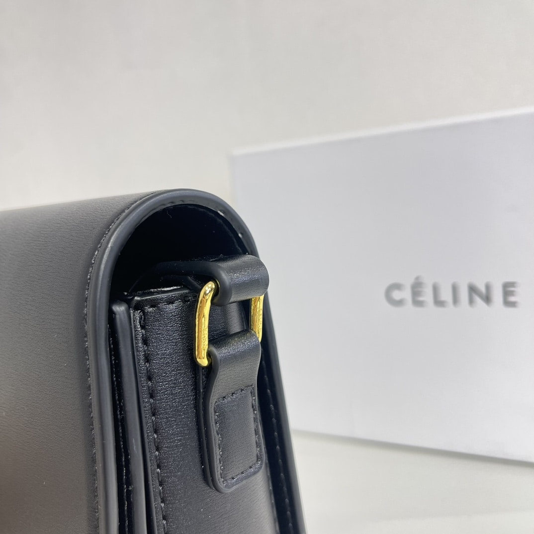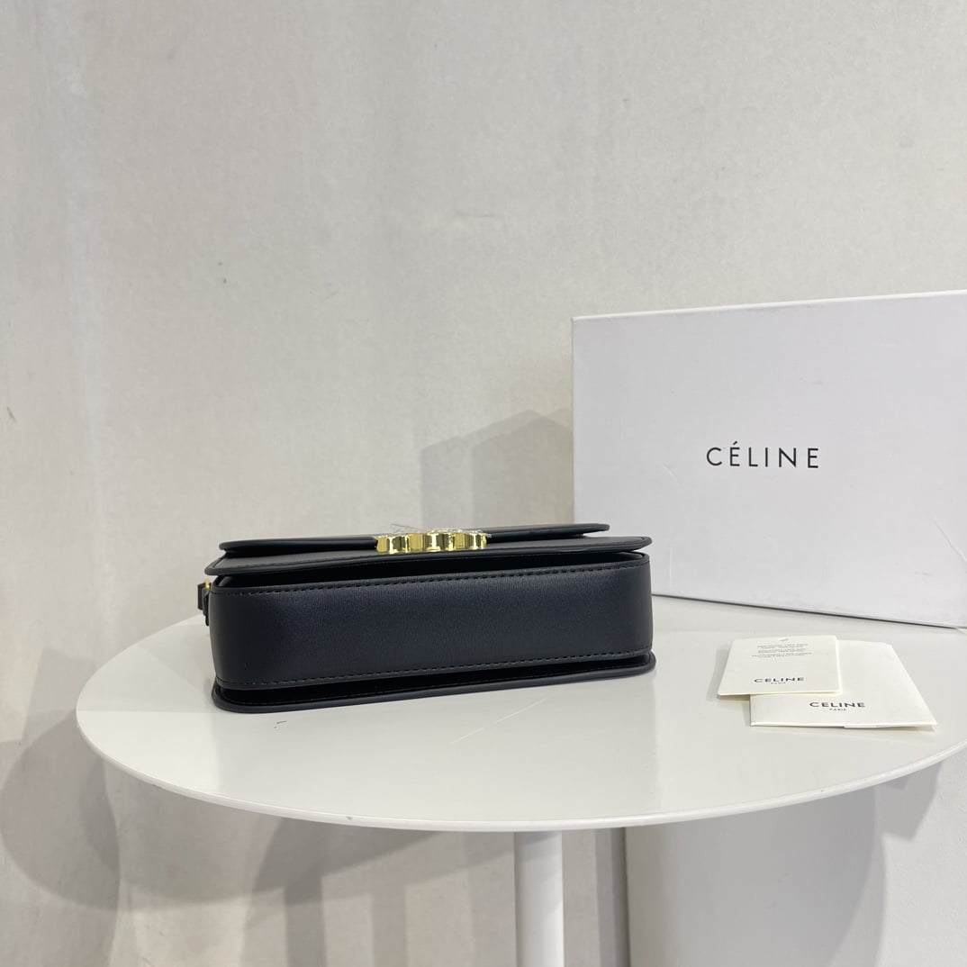 Celine Teen Triomphe Bag In Shiny Calfskin Black 18Cm 188423Bf438No