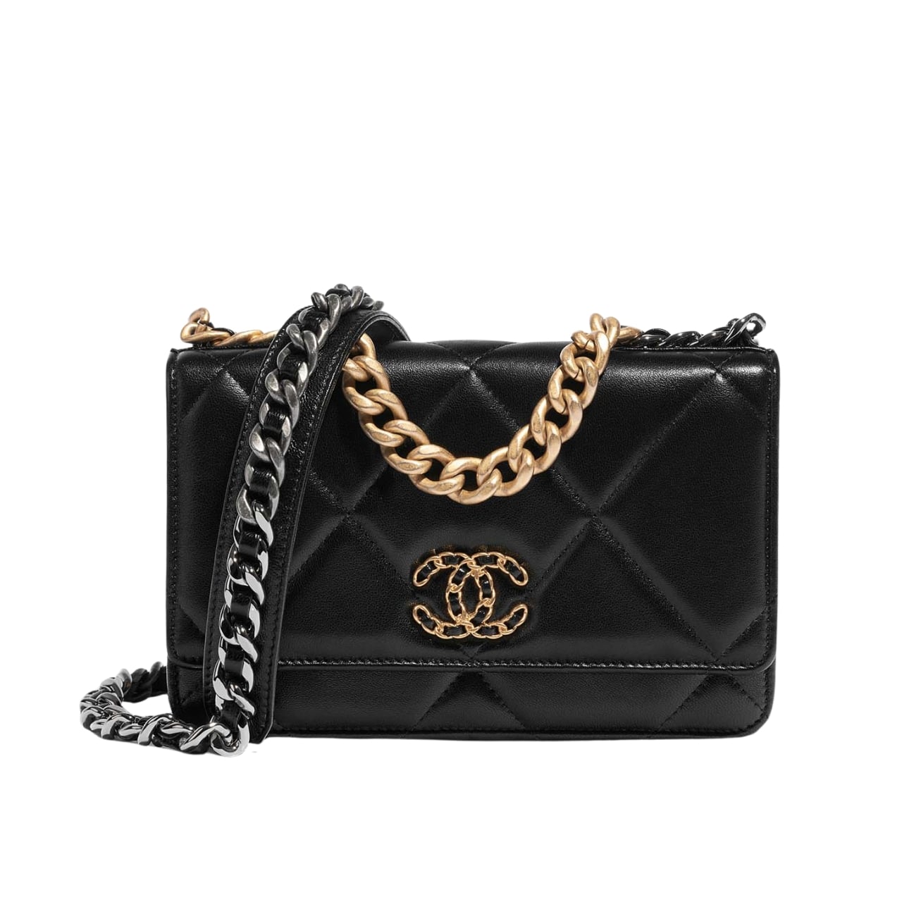 Chanel 19 Wallet On Chain Shiny, Gold-Tone, Silver-Tone & Ruthenium-Finish Metal Black AP3267 B04852 94305 / 19 cm / 7.5 inches