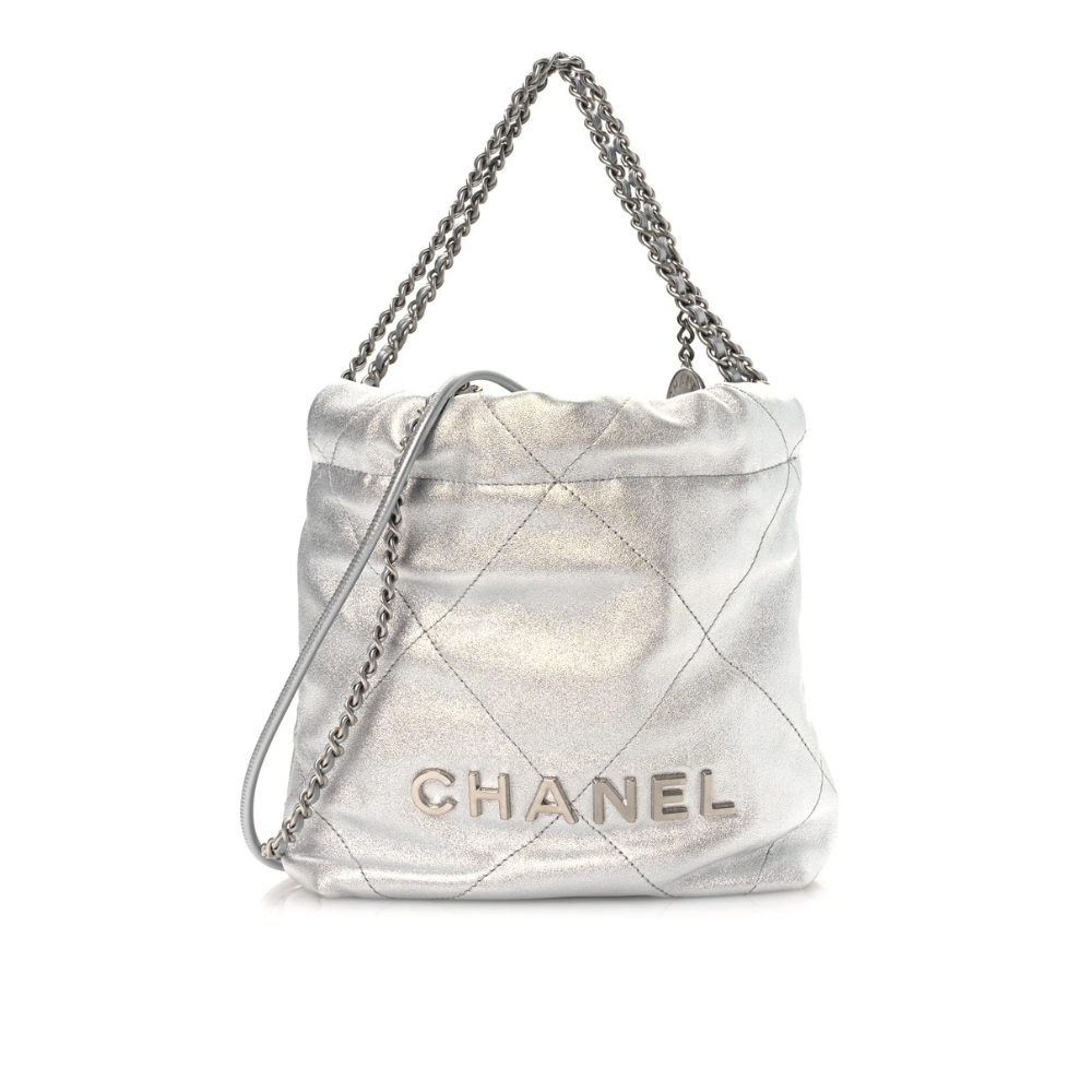 Chanel 22 Mini Handbag Shiny And Gold Tone Metal Silver 20cm