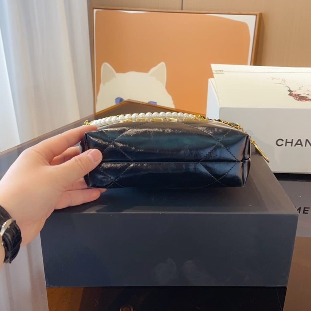 Chanel 22 Mini Handbag Shiny Crystal Pearl Gold Tone Metal ‘Black’ AS3980 B10672 94305 / 22 cm / 7.8 inches
