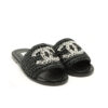 Chanel Black Quilted Leather With White Camellia Cc Logo Sandals G45258 X01000 94305