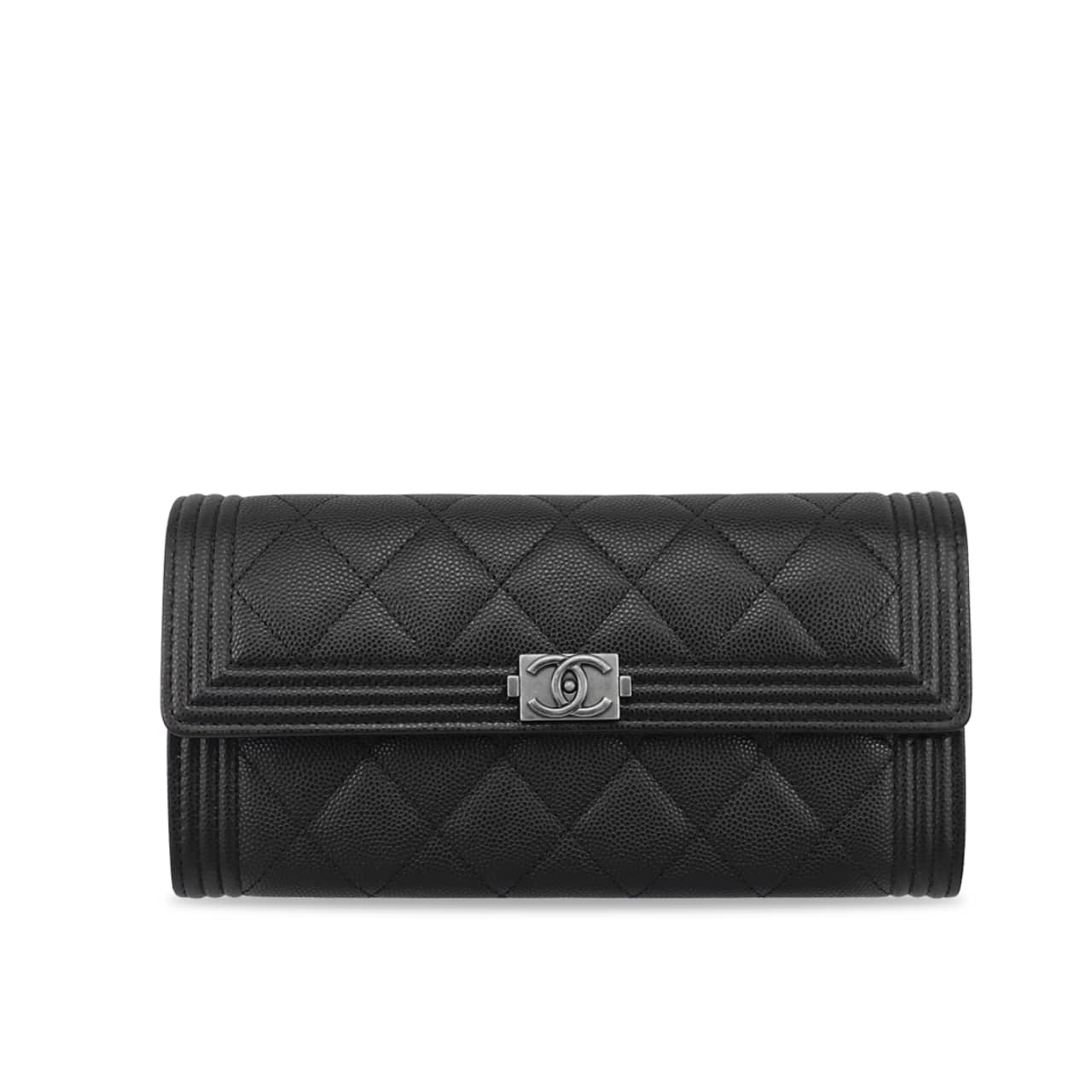 Chanel Boy Long Flap Wallet Grained And Ruthenium Black Silver 19Cm A80286 B01489 94305