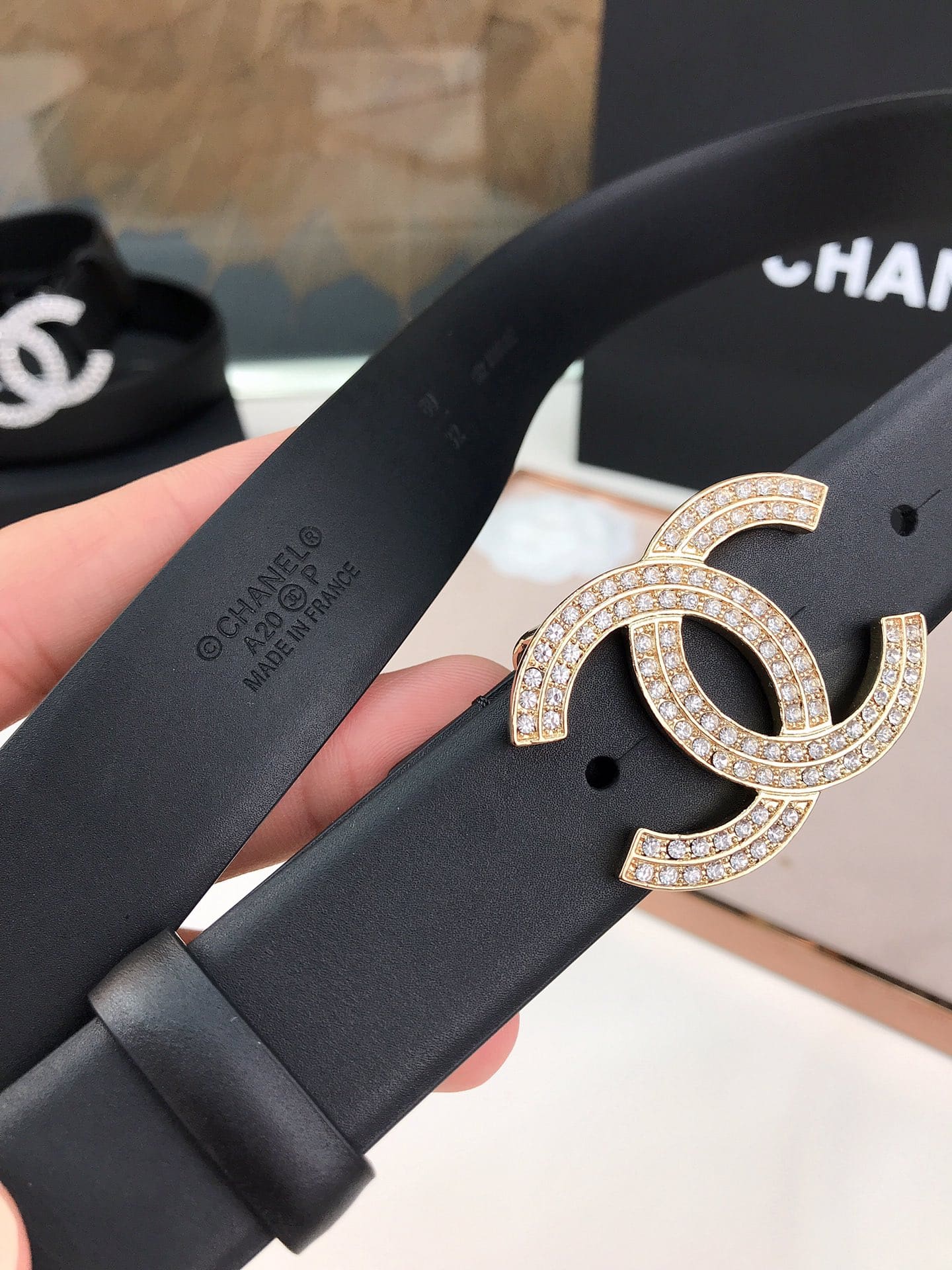 Chanel Calfskin Pearl Crystal Gold Queen Of France Cc Belt 28Mm