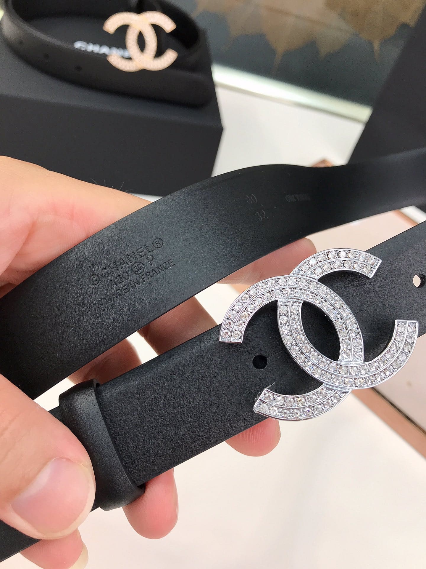 Chanel Calfskin Pearl Crystal Silver Queen Of France Cc Belt 28Mm