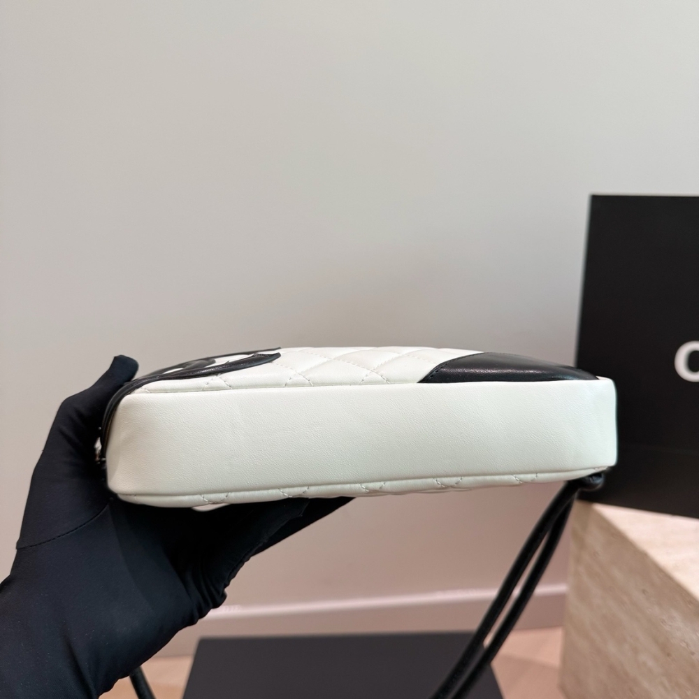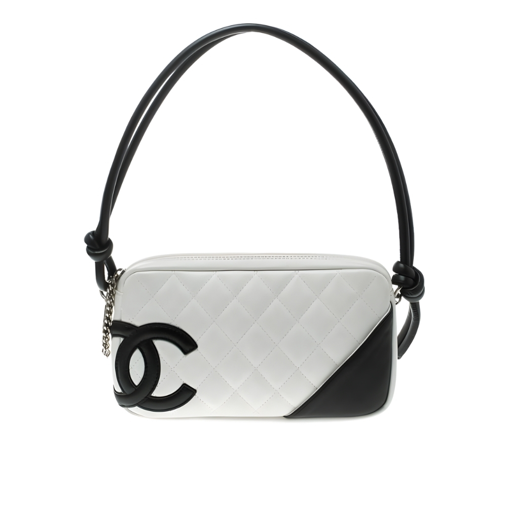 Replica 1:1 – Chanel Cambon Pochette Quilted Leather White And Black 22Cm