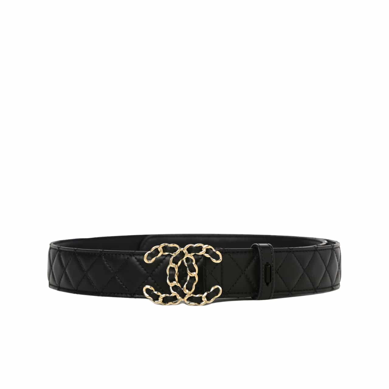 Chanel Cc Belt Gold Chain And Black Leather 28Mm