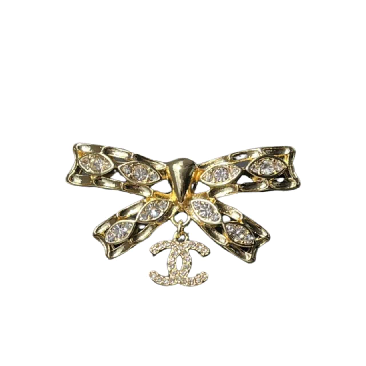 Chanel CC Bowtie Brooch Gold