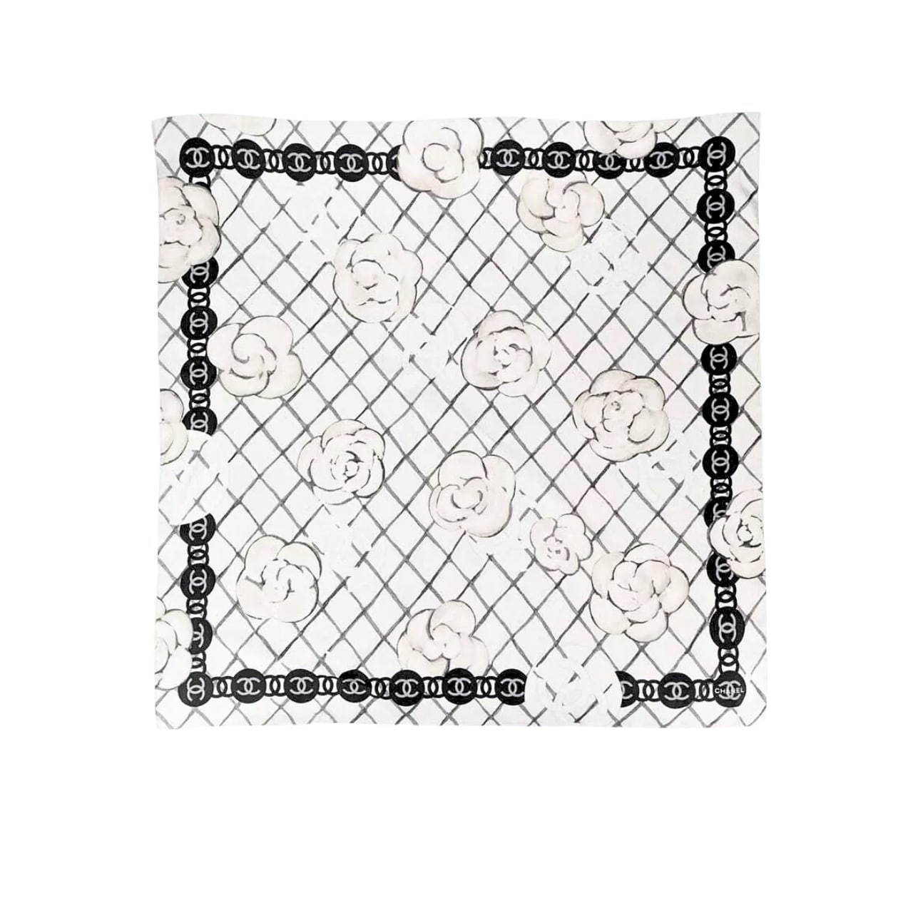 Chanel CC Camellia Silk Scarf In White A39577 X10321 10601