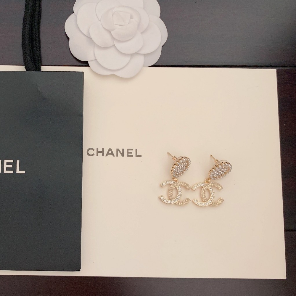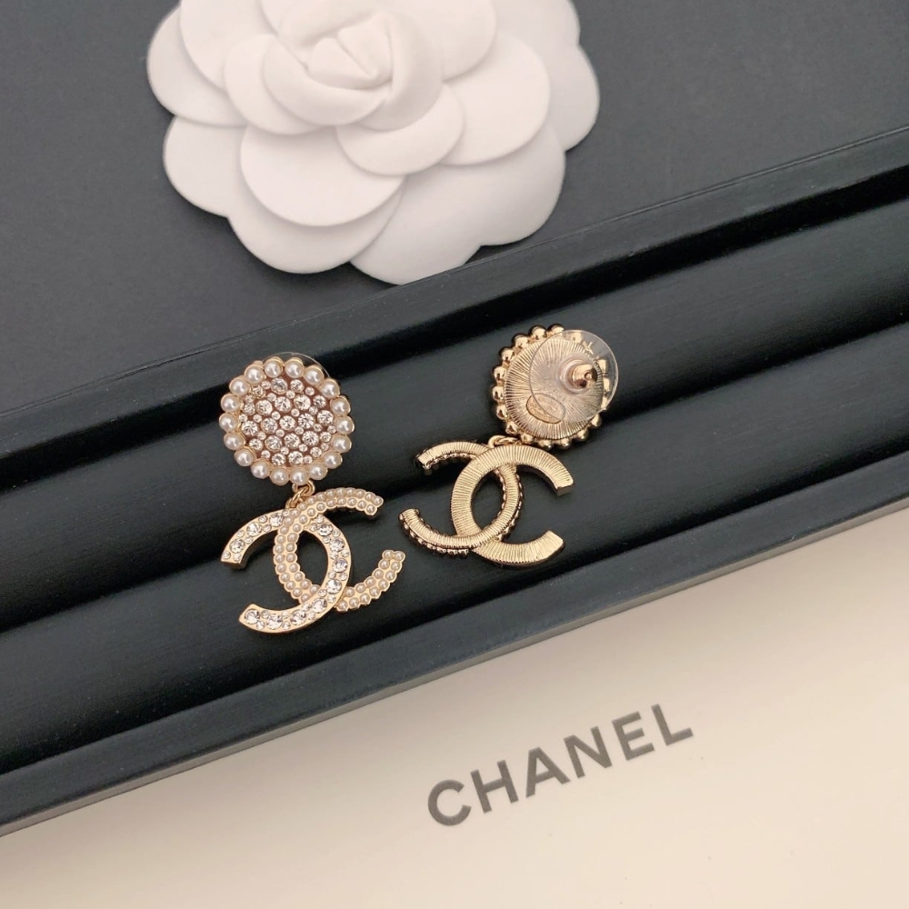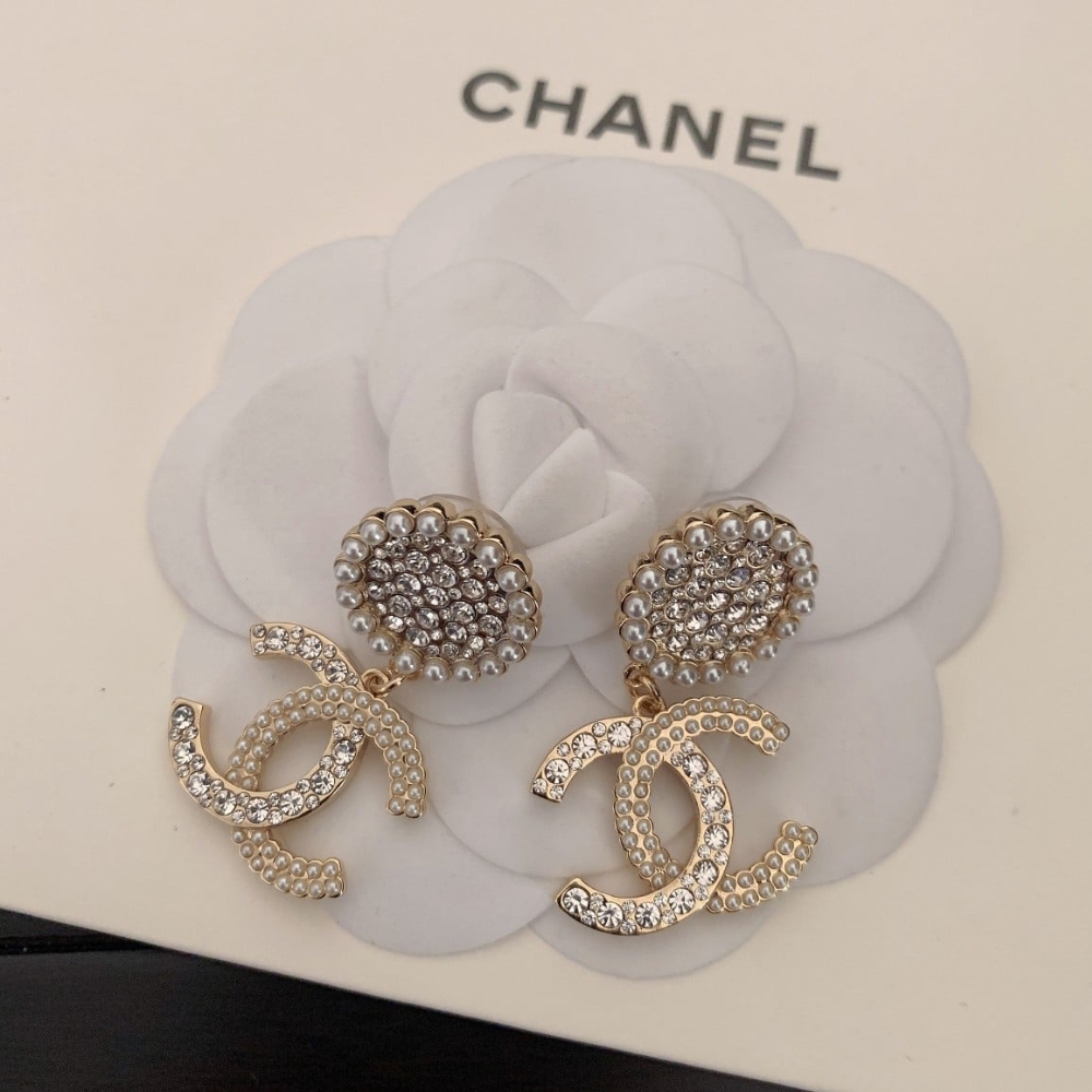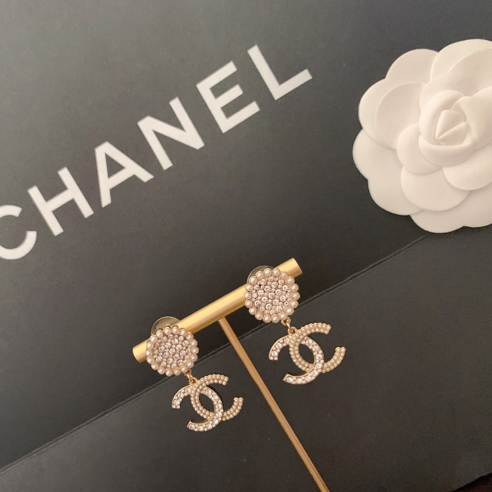 Chanel CC Faux Pearl and Crystal Drop Earrings