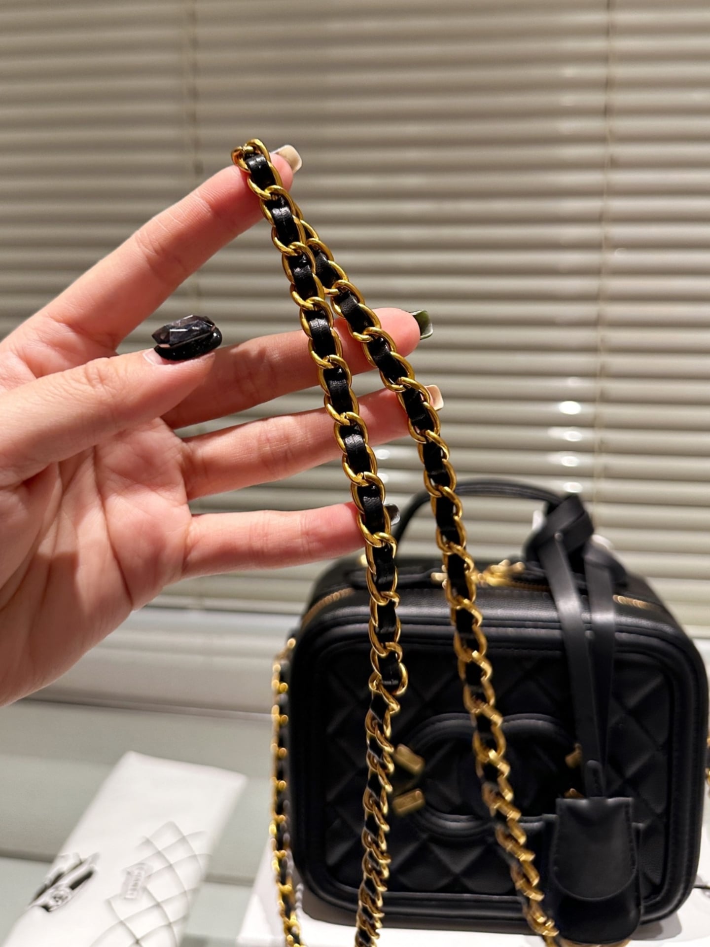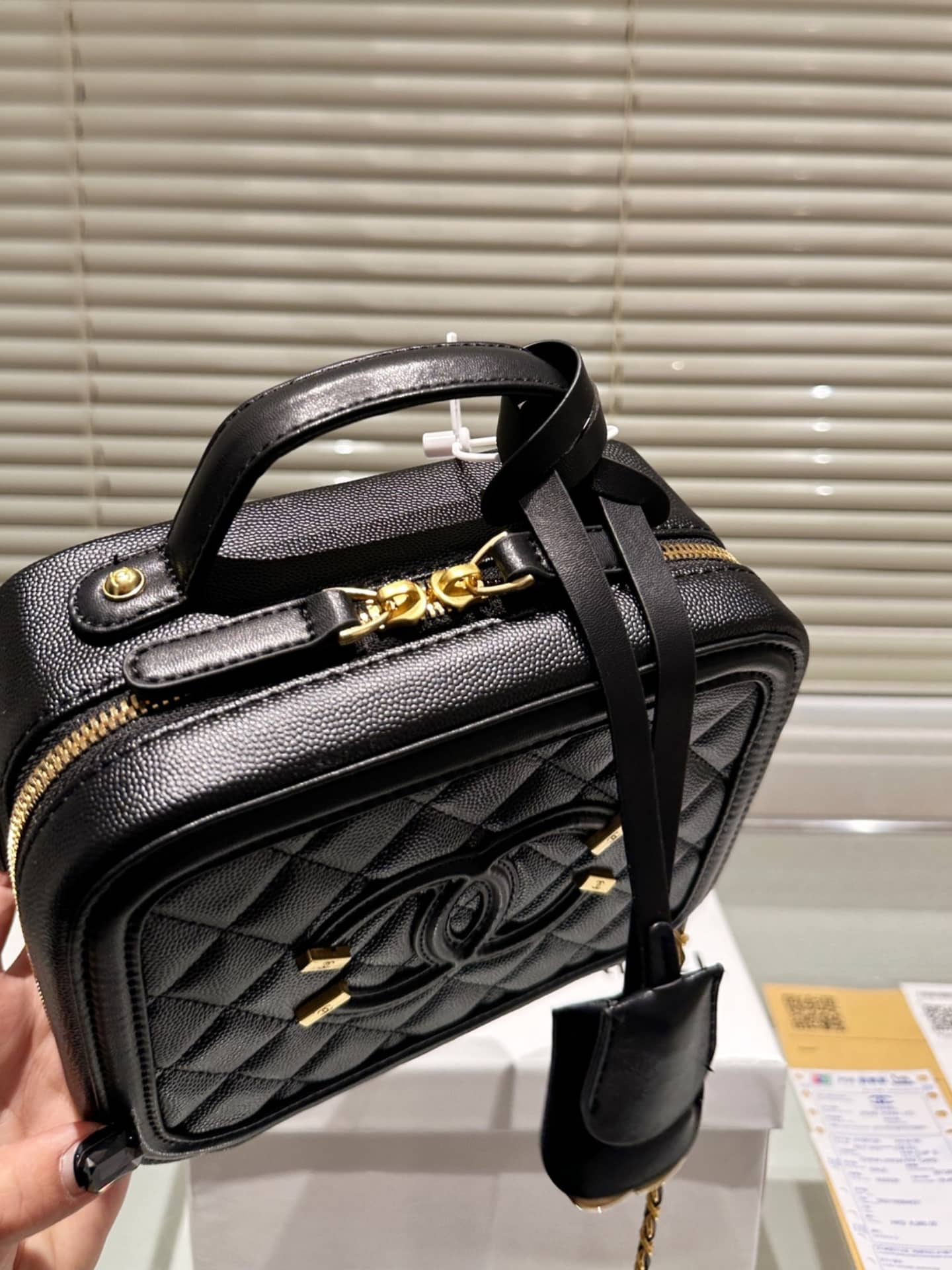 Chanel//CC Filigree Vanity Case//Black//20cm