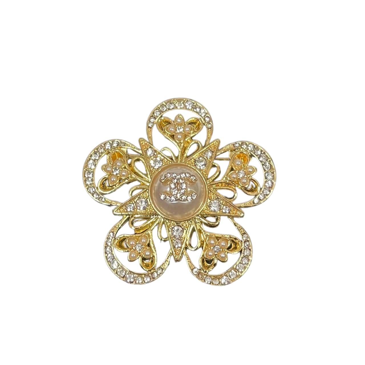 Chanel CC Flower Brooch Gold