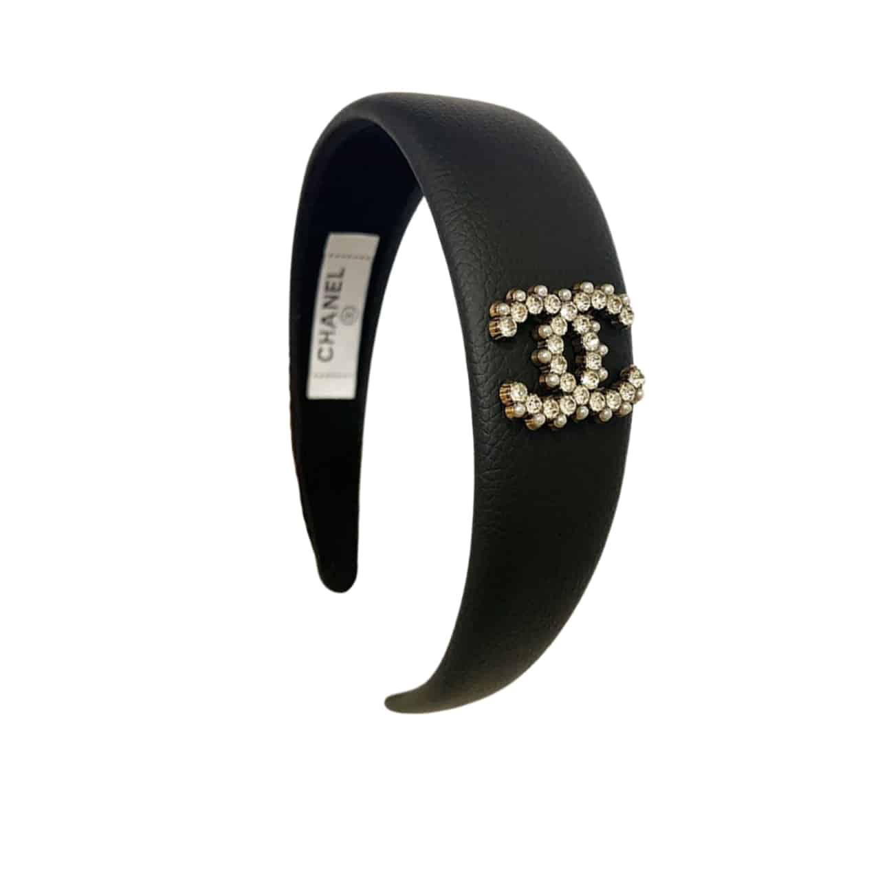 Chanel Cc Tweed Headband With Gold Hardware In Salt And Pepper