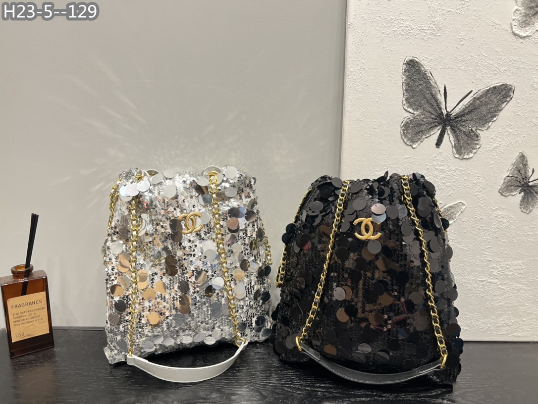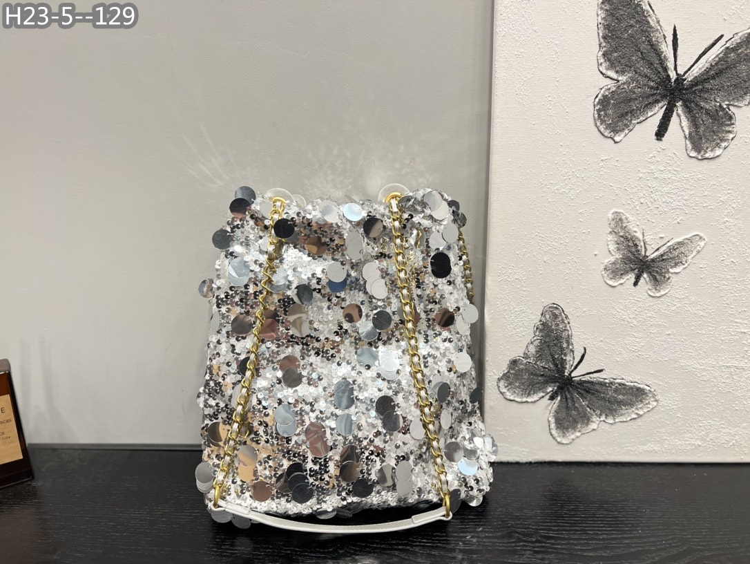 Chanel Cc Sequin Bucket Bag Grey 30Cm