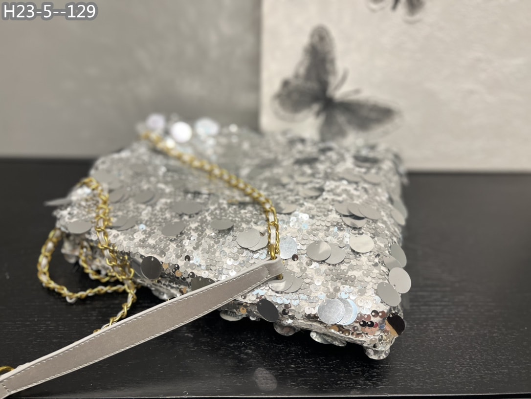 Chanel CC Sequin Bucket Bag / Grey 30Cm