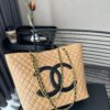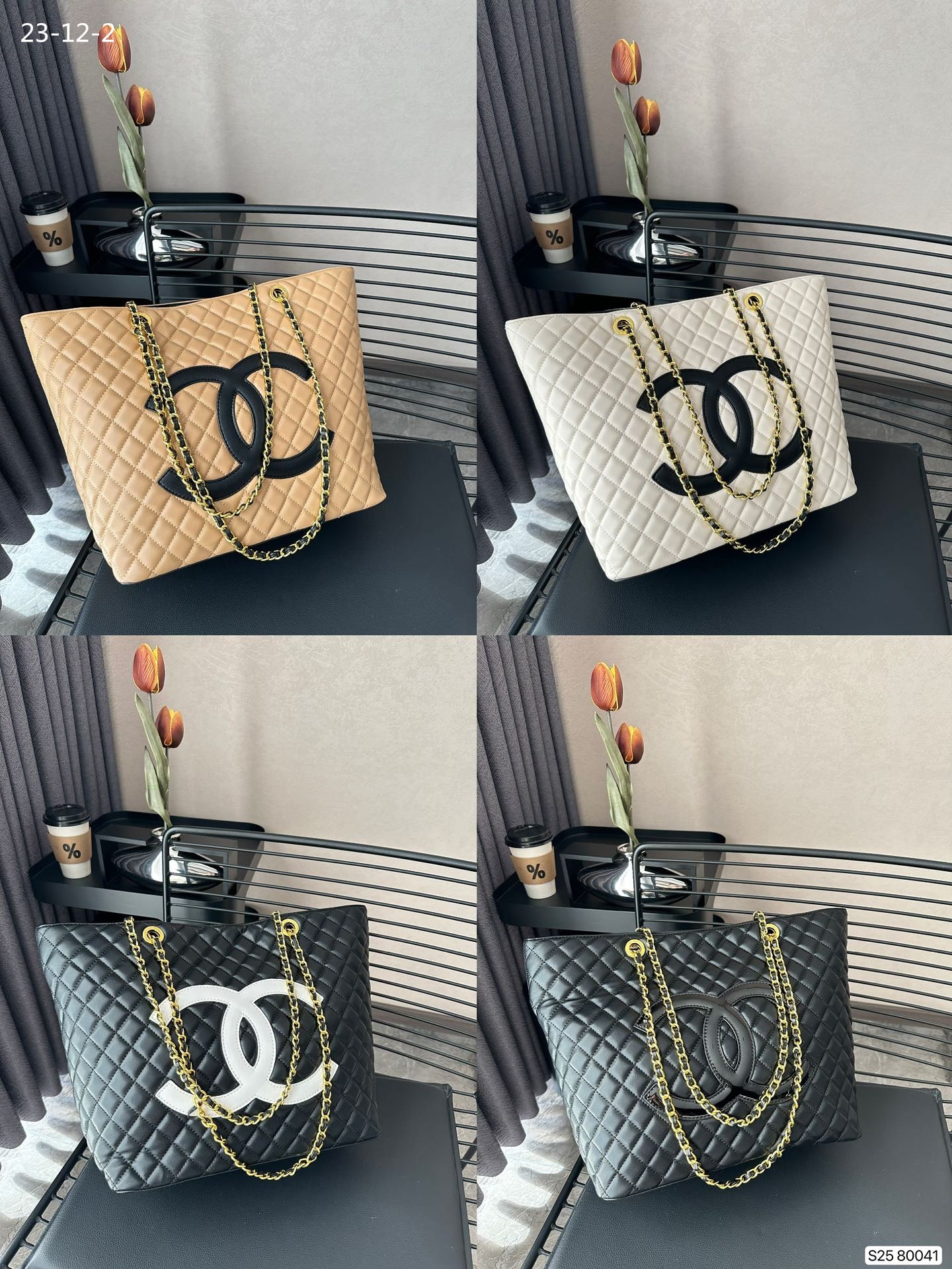 Chanel Cc Shopping Bag With Chain Leather / Beige 32cm