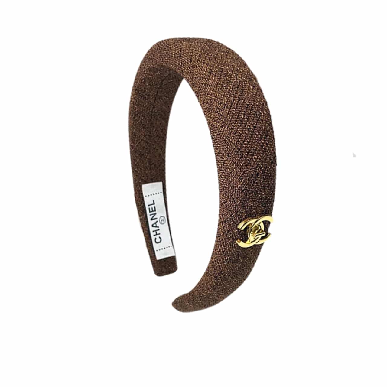 Chanel Cc Tweed Headband With Gold Hardware Brown