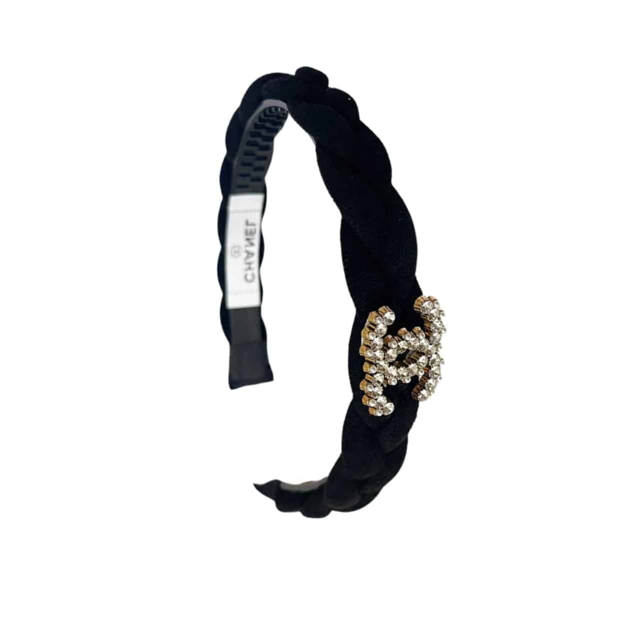 Chanel Cc Tweed Headband With Gold Hardware In Salt And Pepper