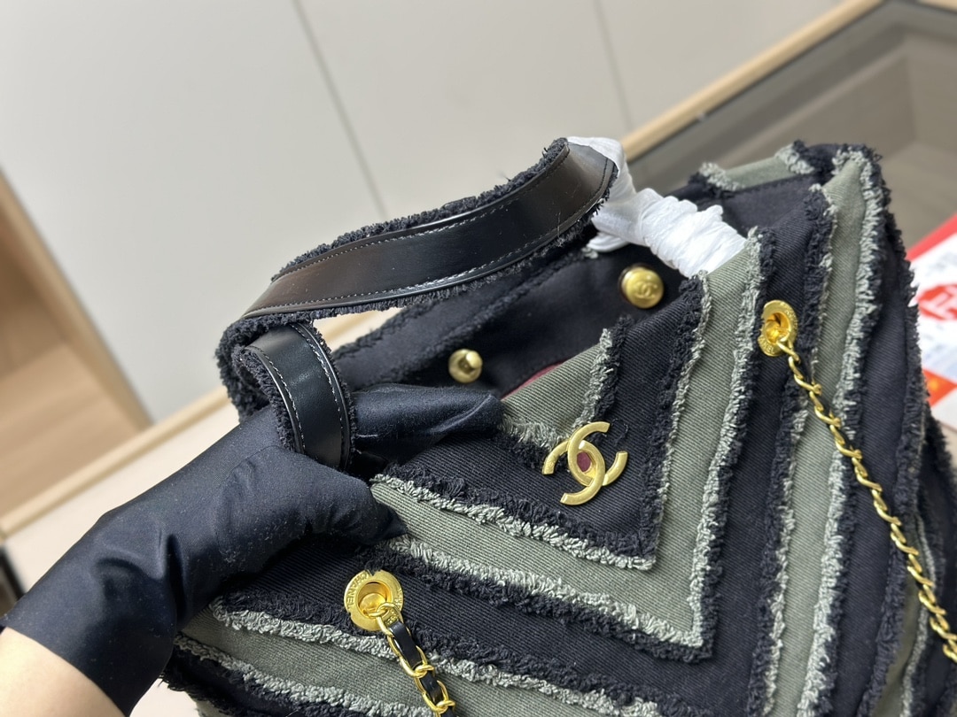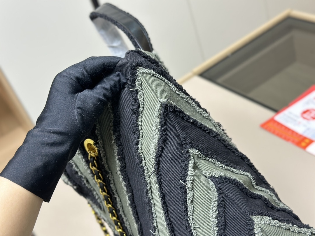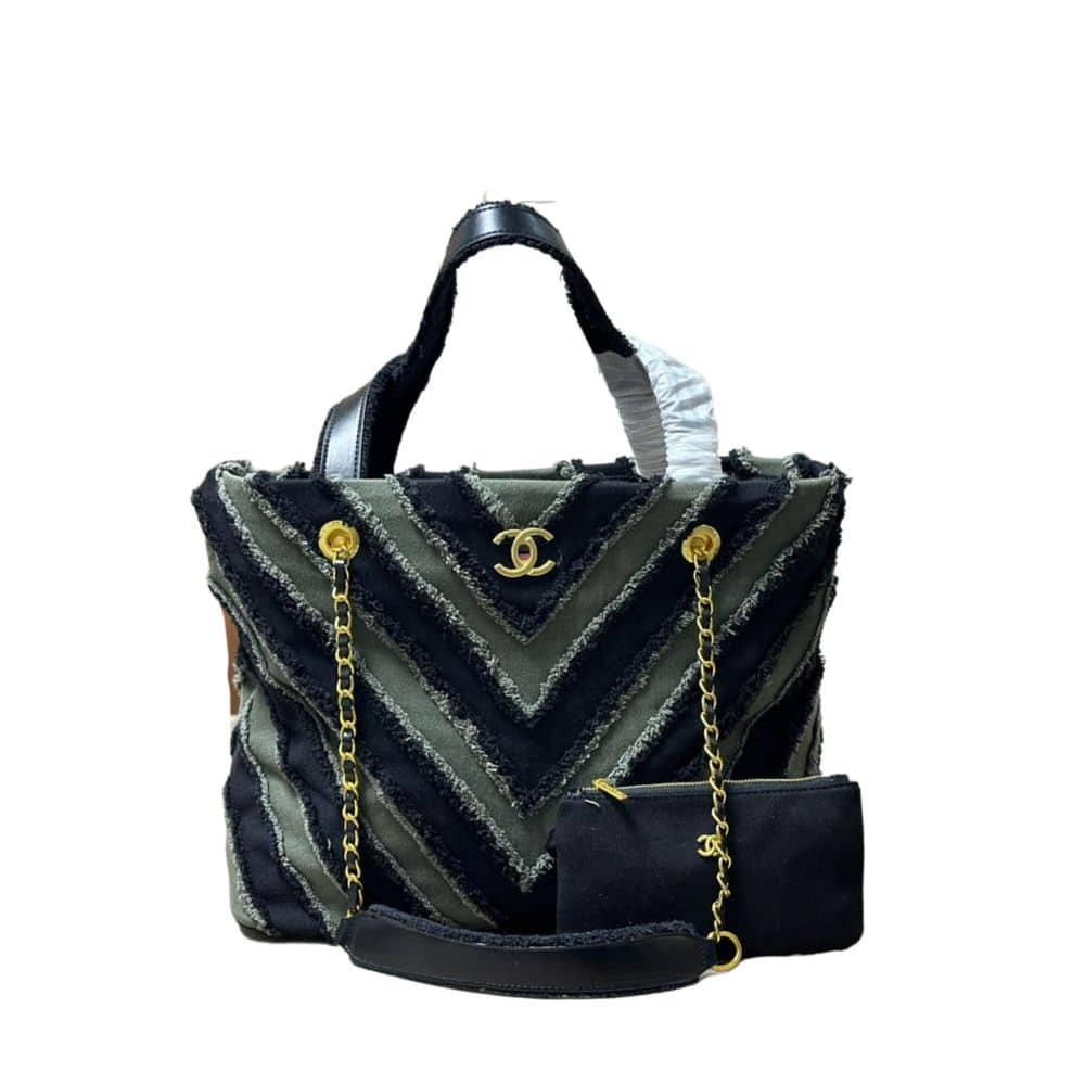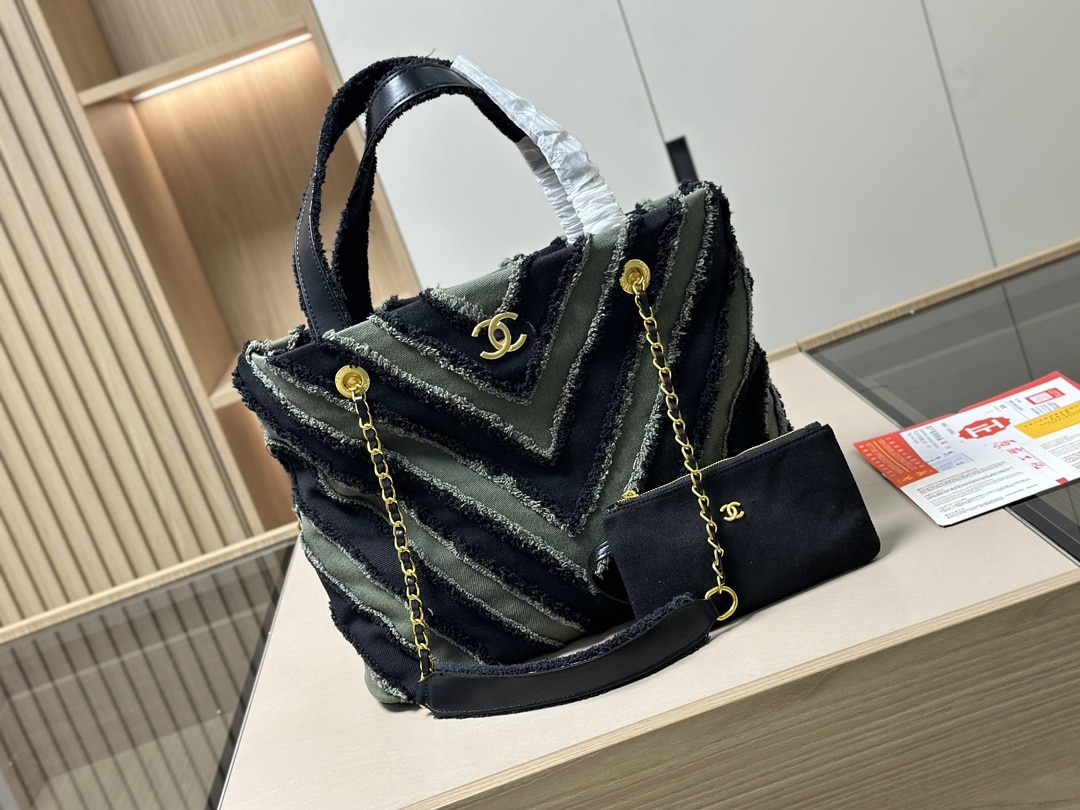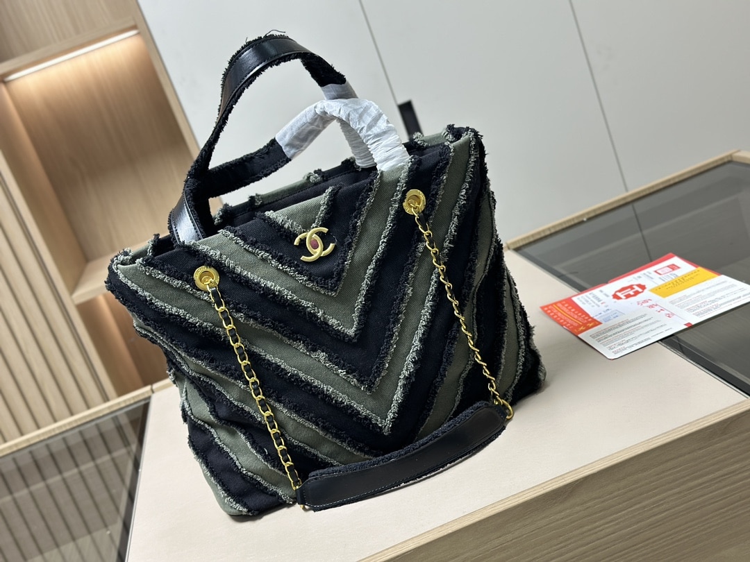 Chanel Chevron Cuba Patchwork Shopper Tote/ Blue 40cm
