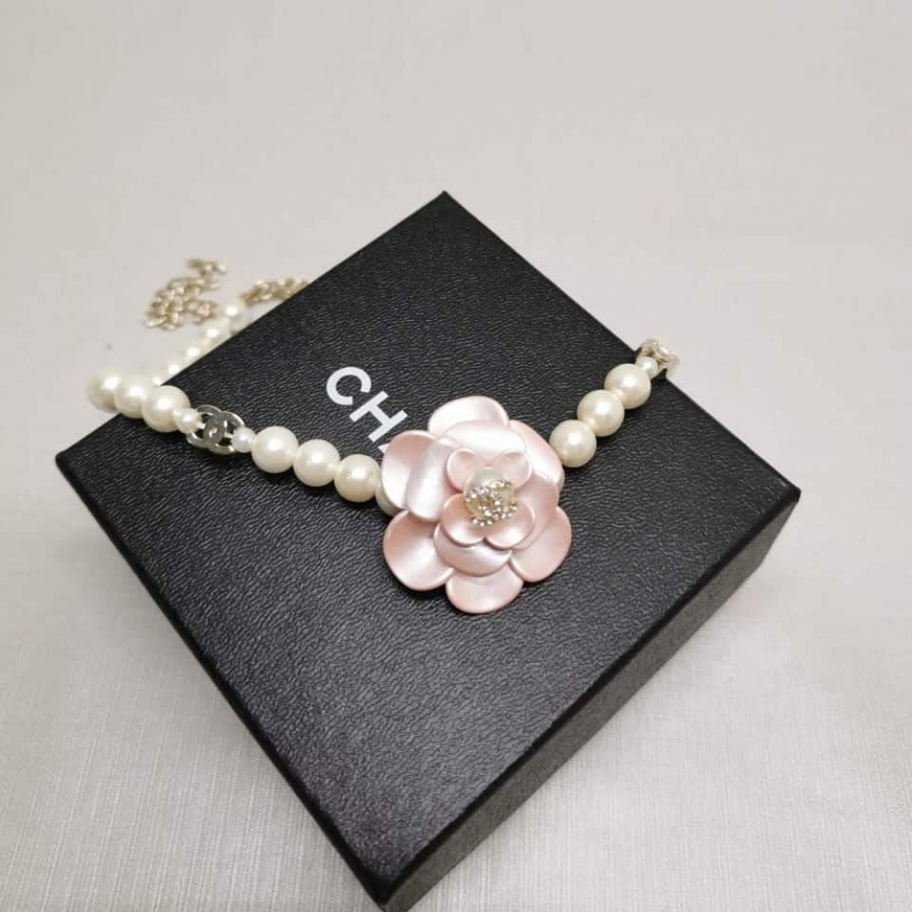 Chanel Choker In Metal Glass Pearls Gold With Pink Pearly Flower ABA025 B09960 NL921