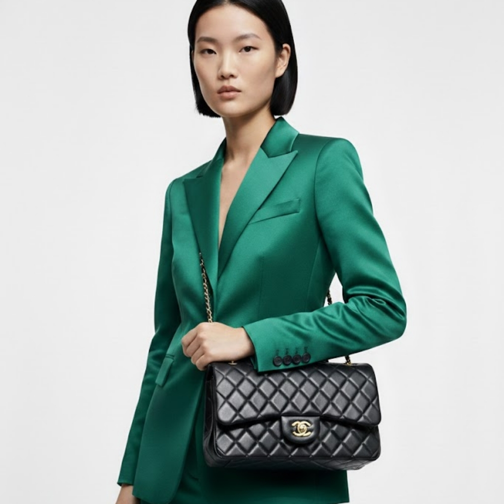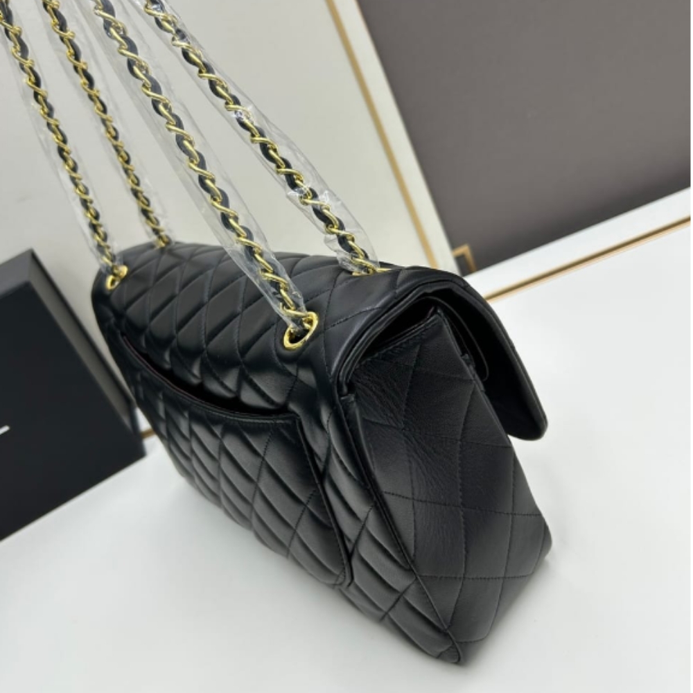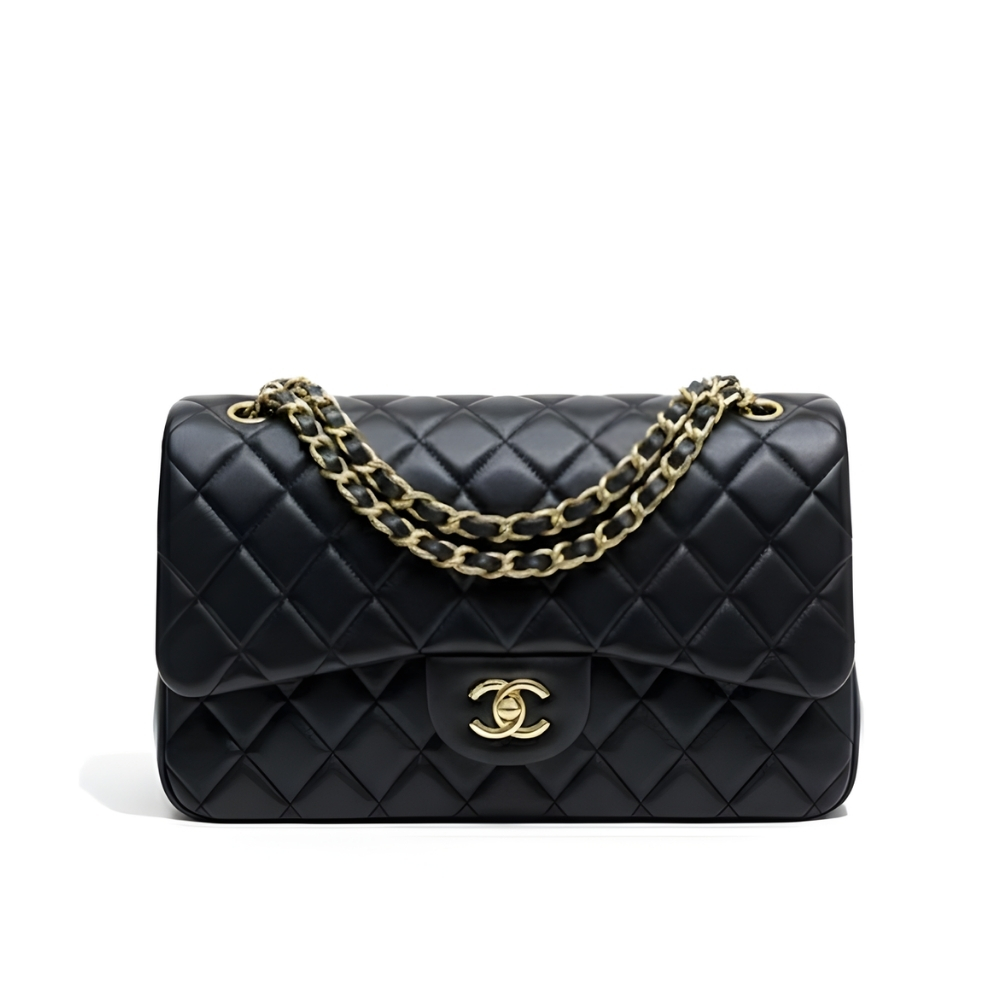 This Chanel Classic 11.12 handbag is crafted from timeless black quilted leather, finished with gold-tone hardware and the iconic CC turn-lock. Designed in a classic 25cm size, it offers elegant structure and everyday versatility. A true luxury staple that never goes out of style.