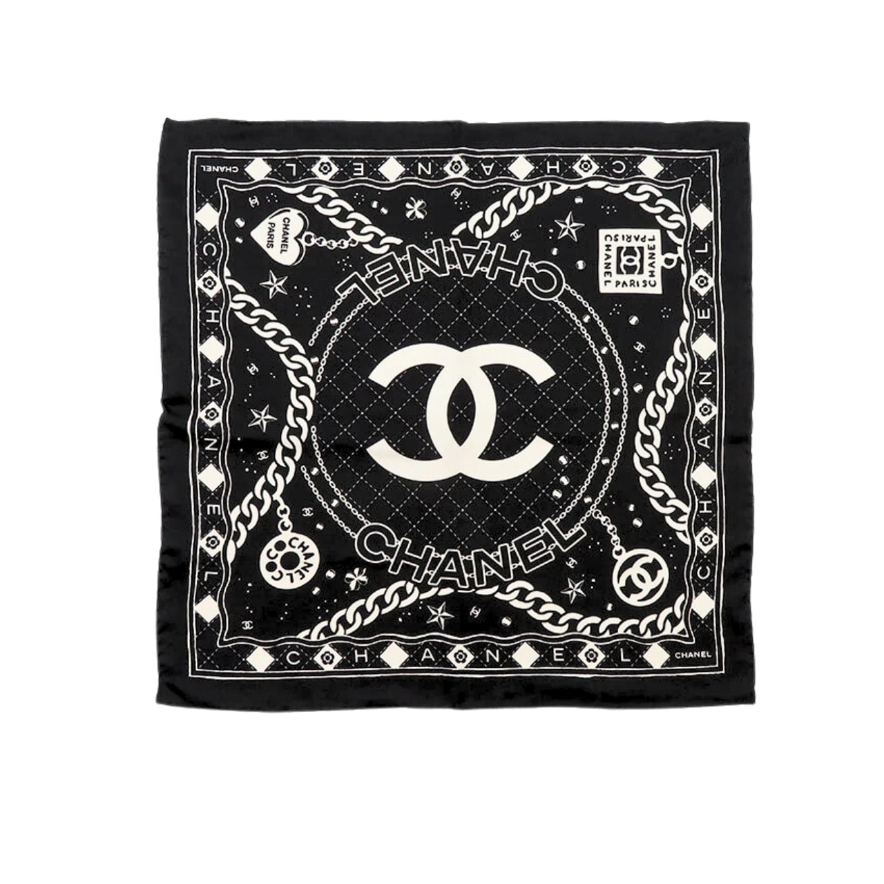 Chanel Classic Double C Logo Print Silk Scarf Black 90cm