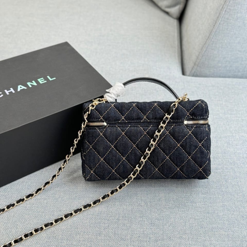 1:1 Replica Bag – Chanel Classic Vanity with Chain Gold Metal Denim Dark Blue 19cm AP4385 B23492 U7663