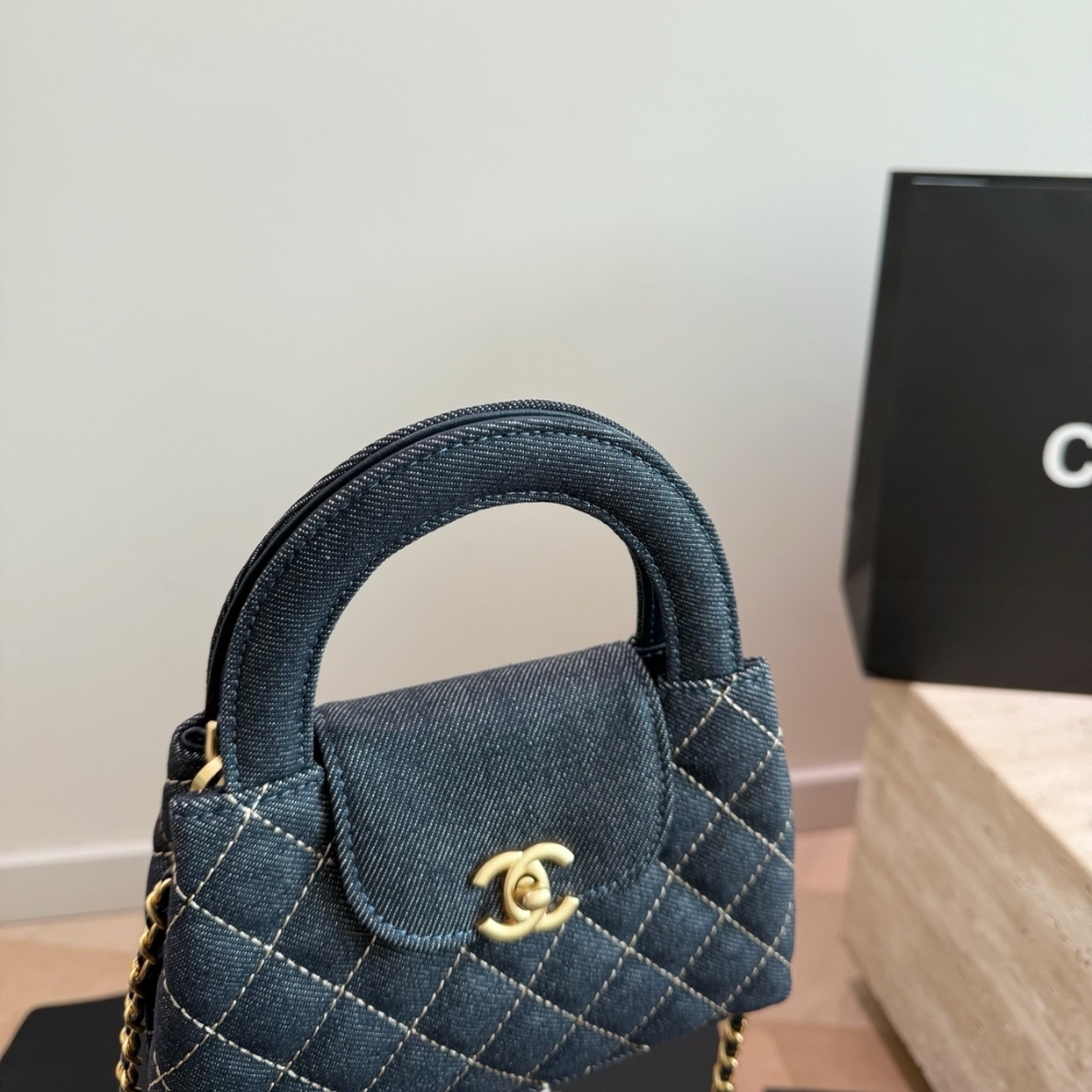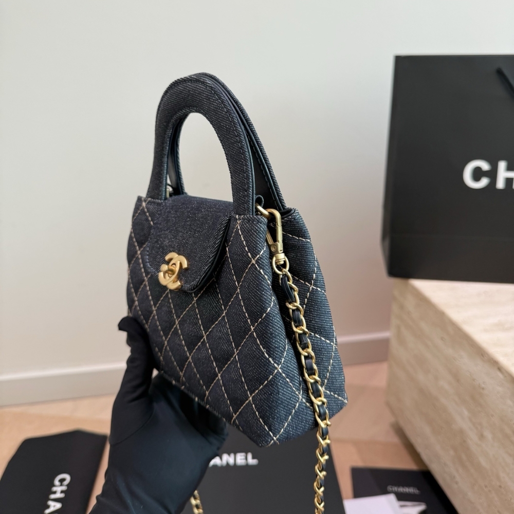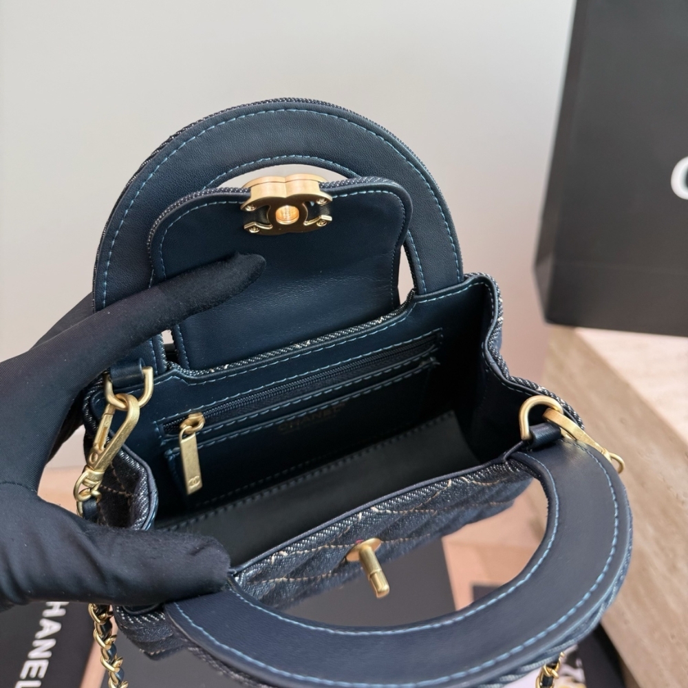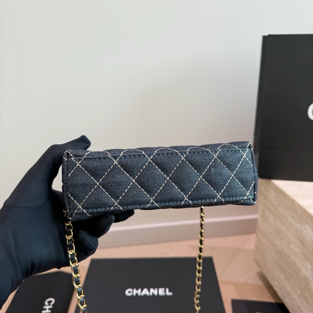 Chanel Clutch With Strap Gold Metal Washed Denim Blue 19cm