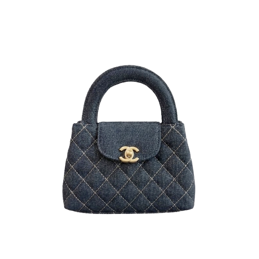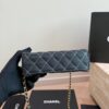 Chanel Clutch with Strap / Denim / Blue / 7.5 x 4.7 inches / Gold-toned hardware / Fits smartphone, cardholder, and small cosmetics / Elegant clutch bag
