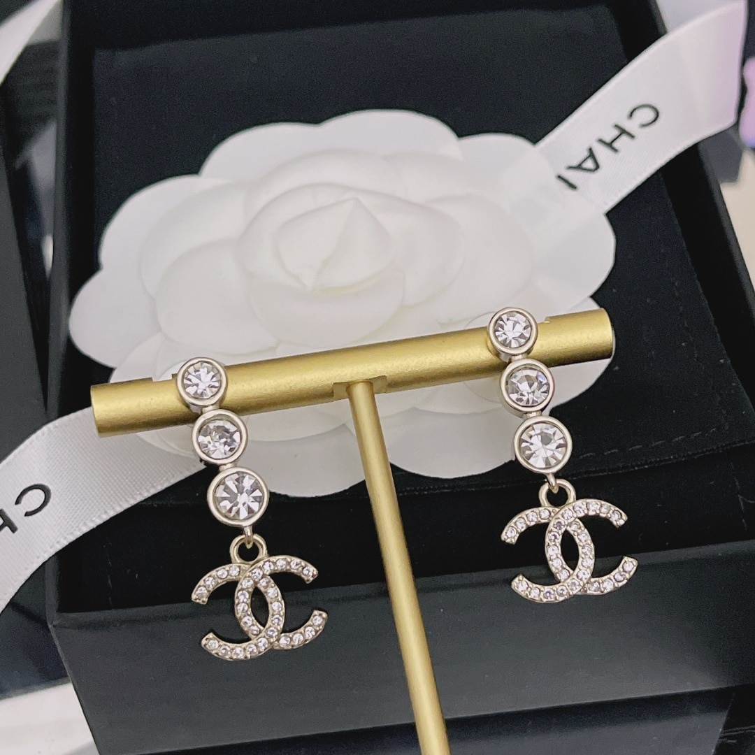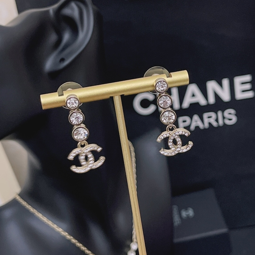 Chanel Crystal CC Drop Earrings Gold