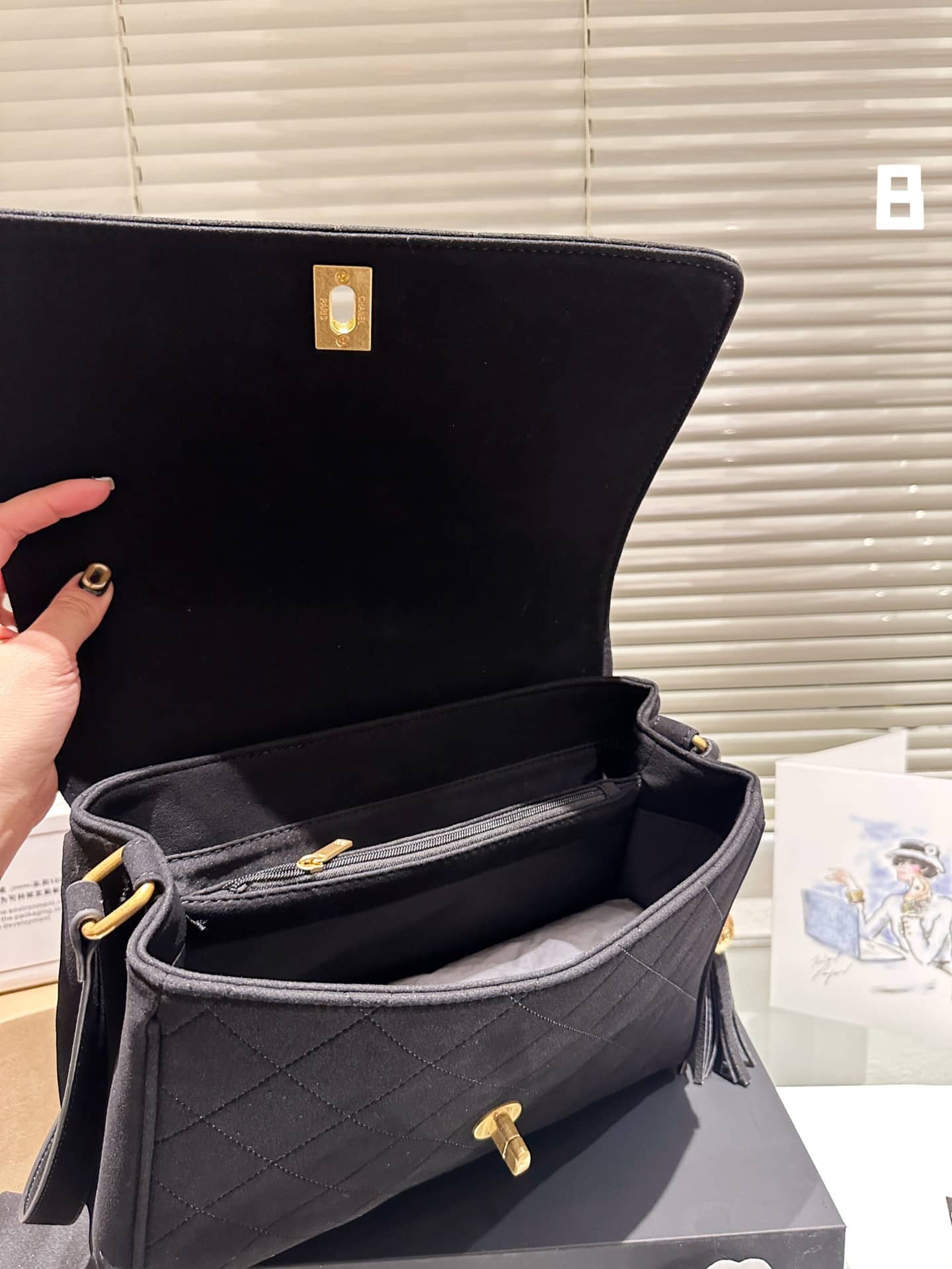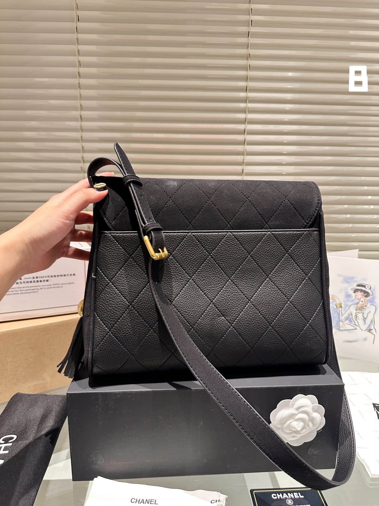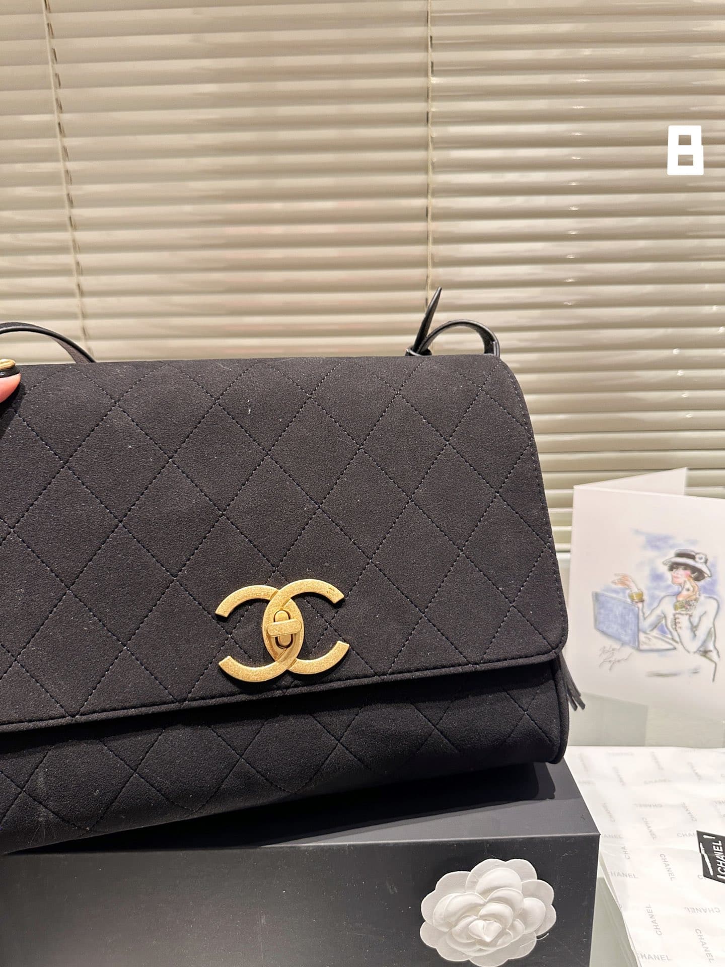 Chanel Flap Bag Pearl Crush In Suede Leather / Black 30cm