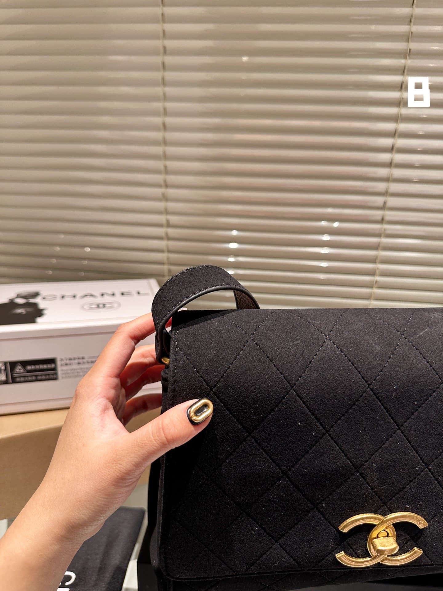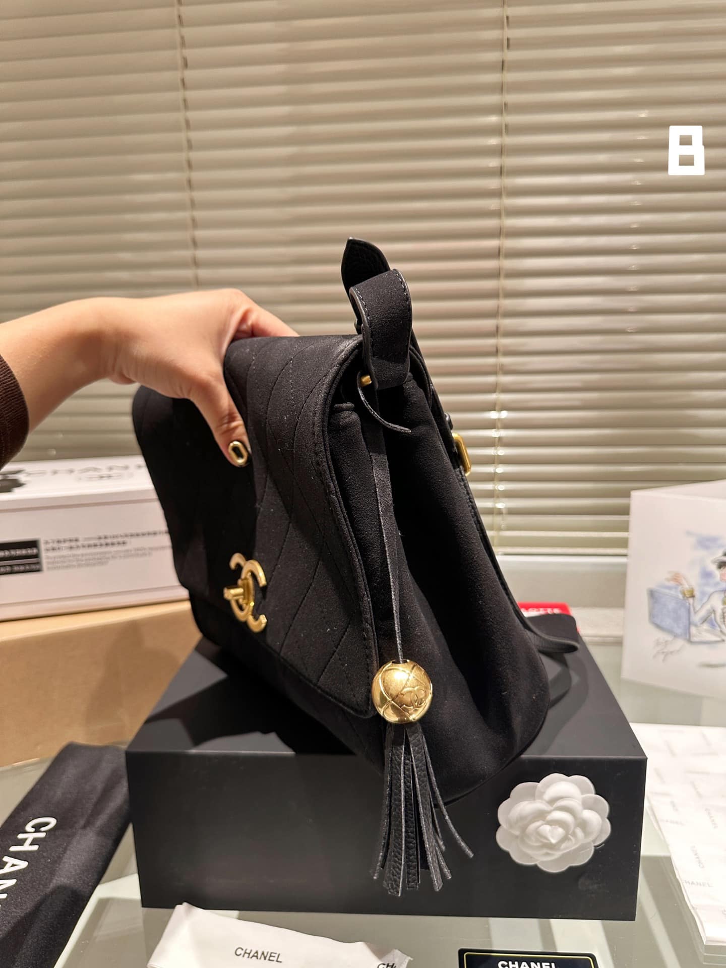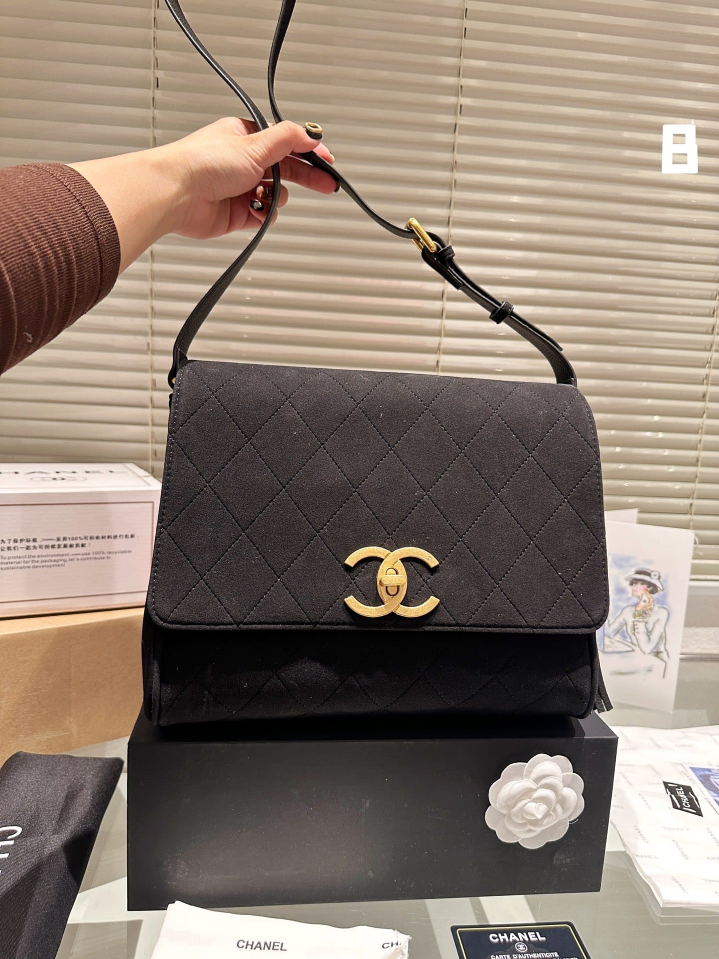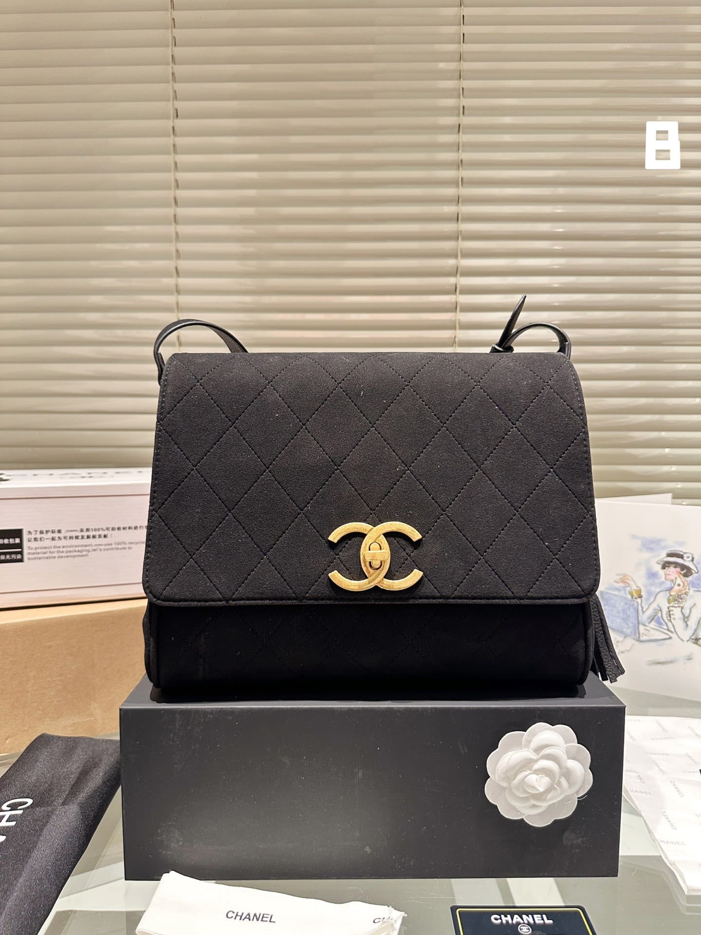 Chanel Flap Bag Pearl Crush In Suede Leather / Black 30cm