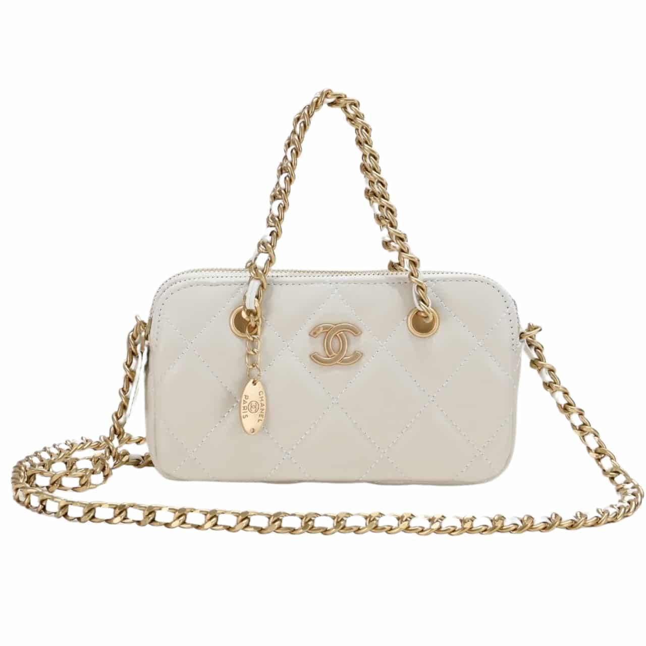 Chanel //Handbag Gold Tone Metal //White// 20cm