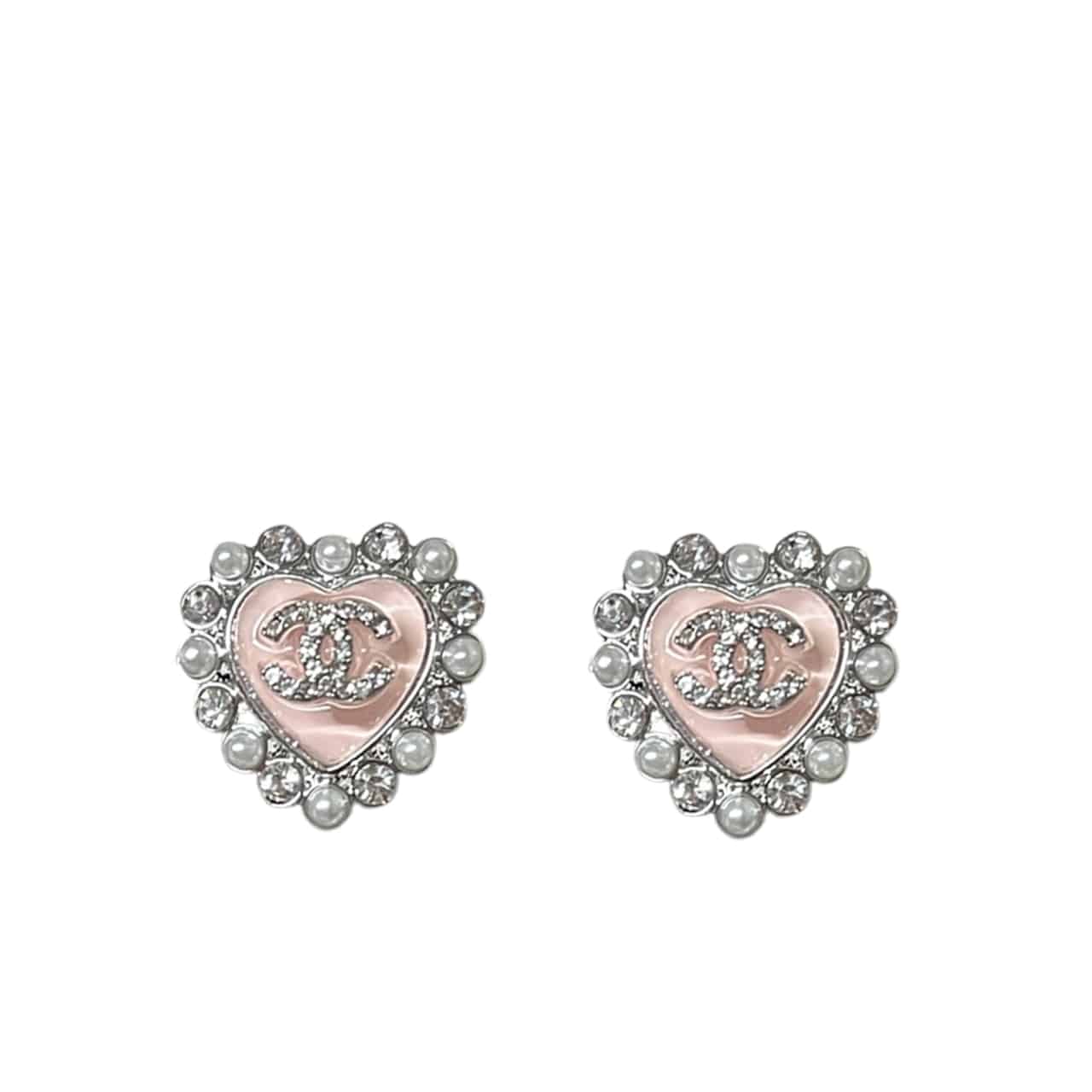 Chanel Heart Motif And Crystal Earrings In Pink