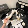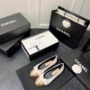 Chanel Leather Cap Toe Ballet Flats White Gold