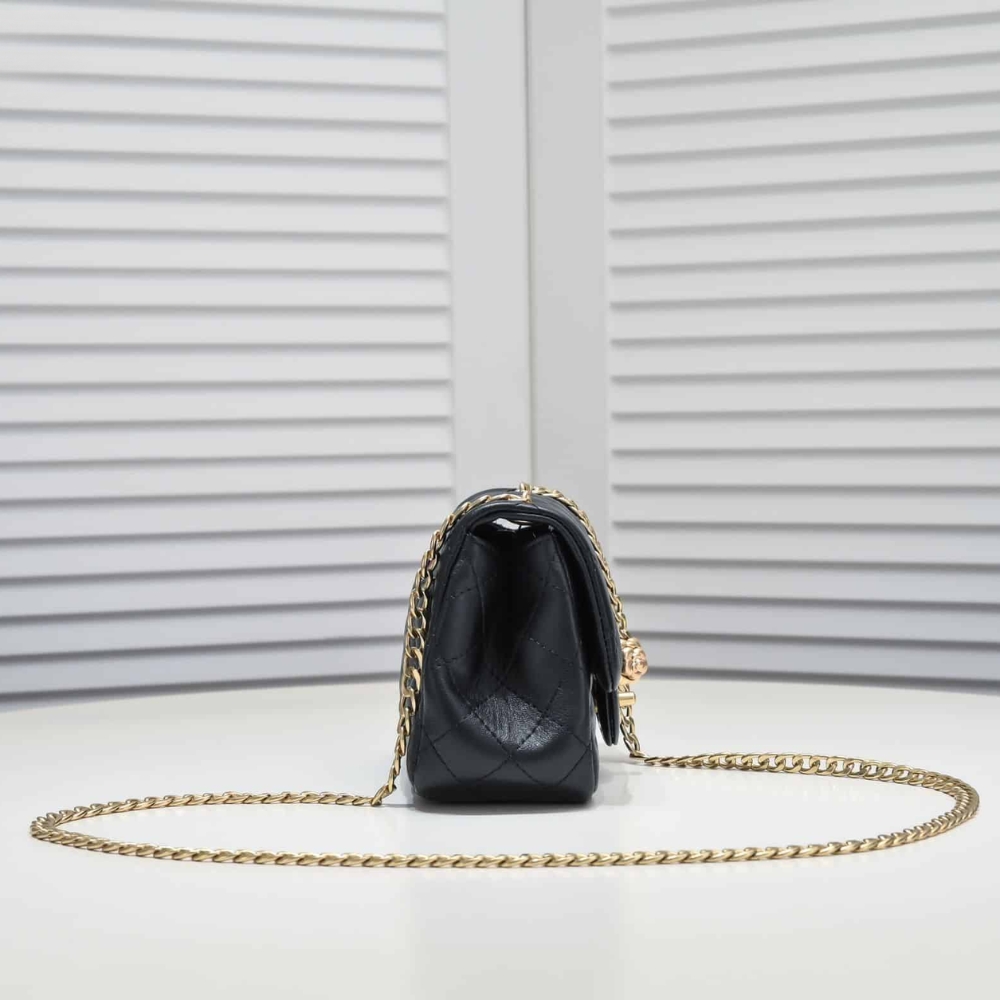 Chanel Mini Flap Bag With Camellia Flower Chain Black / 18Cm / 7 inches