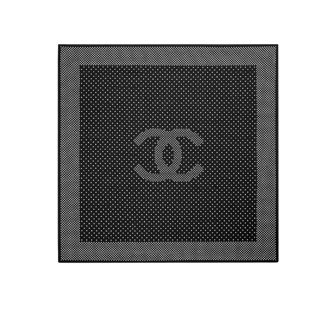 Chanel Polka Dot Pattern Silk Scarf In Black 90cm AA9837 B15685 NV127